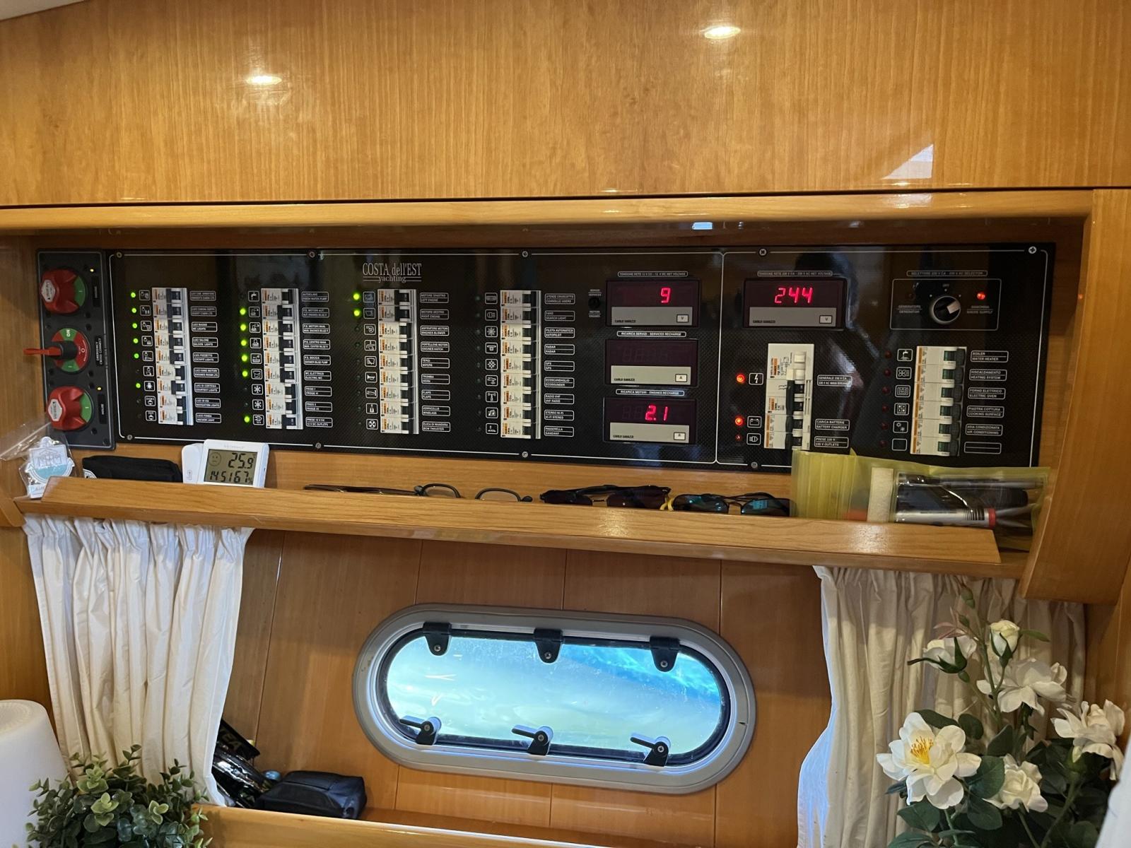 Alarme moteur, Eau sous pression, Batteries (2025), Douche de cockpit, Flaps hydrauliques, Garage à annexe, Plateforme arrière, Pompe de cale manuelle, Cockpit en teck, Prise de quai, Rollbar, Guindeau électrique, Echelle de bain, table de cockpit.