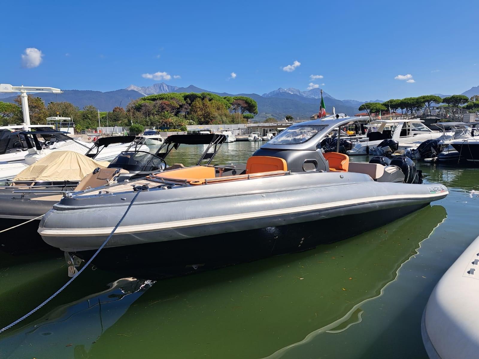 Albatro international 32 Open avec deux hors-bord Mercury Verado 300 avec 400 heures de moto. Bain de soleil arrière, salle de bain avec lavabo sous la console de barre. Menottes électroniques. GPS Raymarine. Frigo dans le cockpit . TTop .