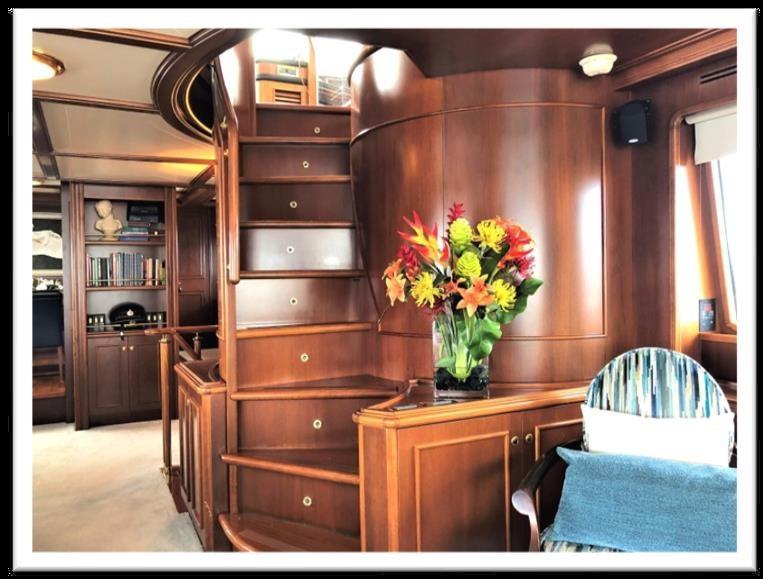 Alarme moteur, Alarme de pompe de cale, Eau sous pression, Passavant en teck, Propulseur de poupe (HYDROMARIN), Propulseur d'étrave (SIDE POWER), Bossoirs pour annexe, Extincteur(s) fixe(s), Passerelle, Plateforme arrière, Pompe de cale automatique, Cockpit en teck, Prise de quai, Guindeau électrique, Stabilisateurs (FINS), table de cockpit, Winch électrique arrière, Winch électrique avant.