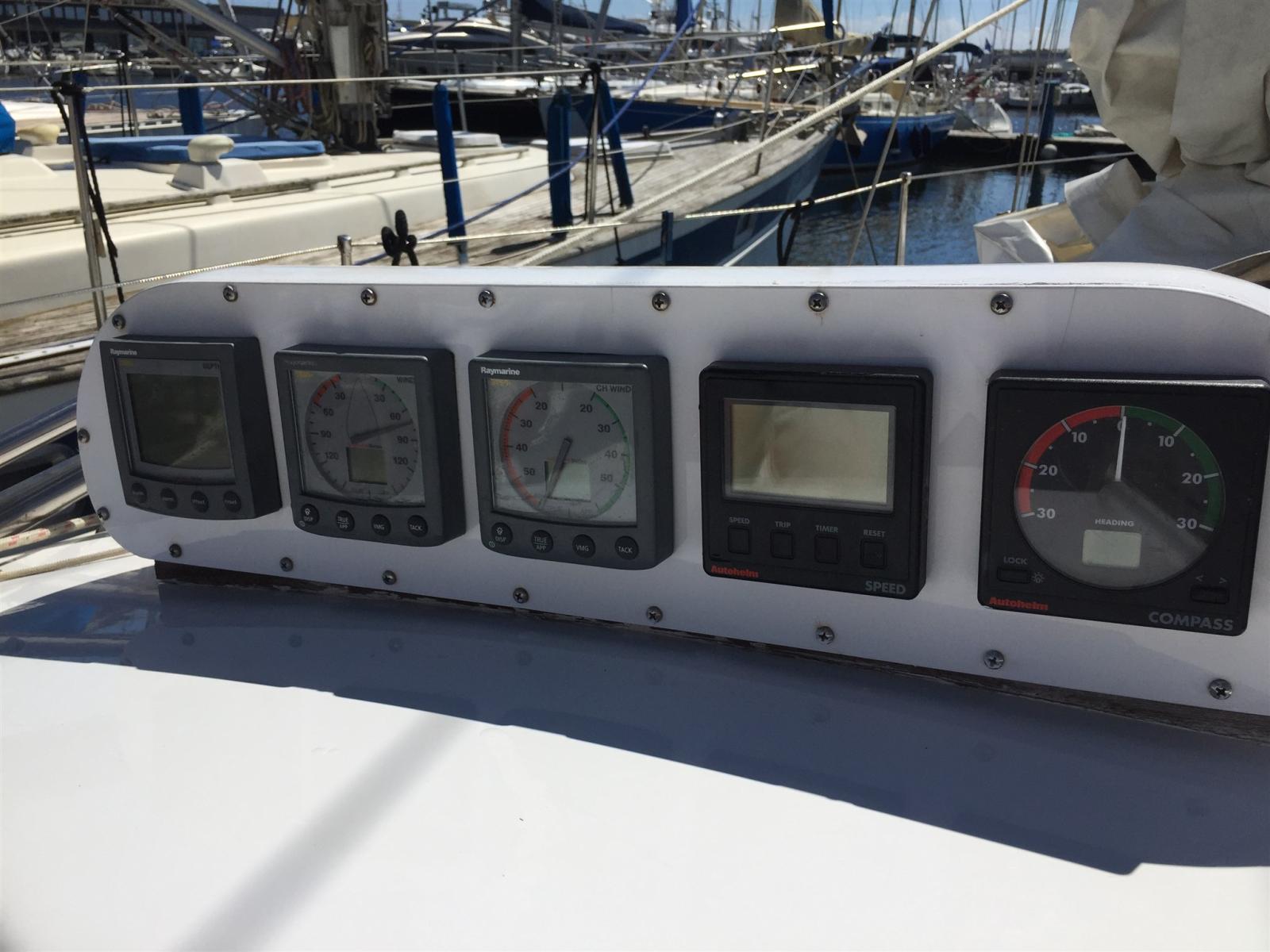 Eau sous pression, Douche de cockpit, Cockpit en teck, Prise de quai, Guindeau électrique, Echelle de bain, Annexe (EVINRUDE 4HP), 2 Winch électrique (2003).