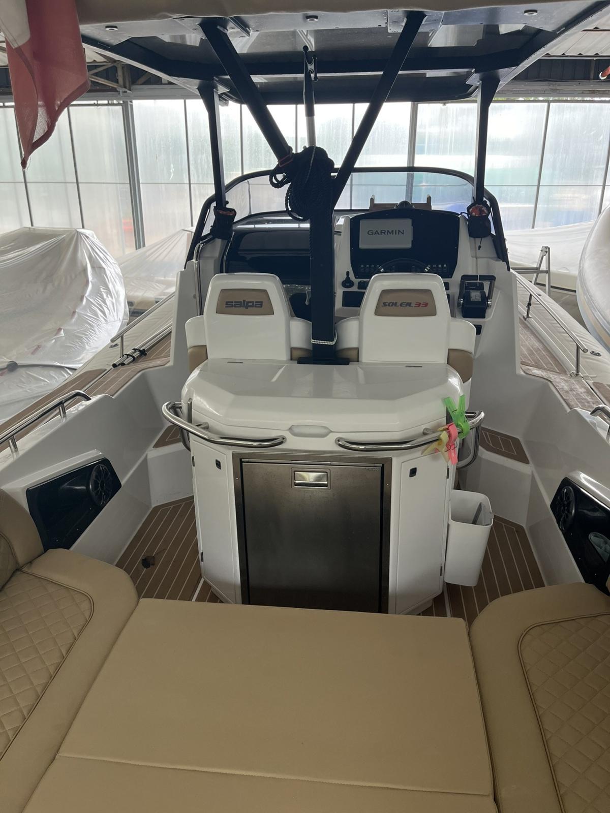 Soleil 33 prend la mer avec deux Honda de 250 ch avec seulement 60 heures de mouvement. Entièrement optionnels, pratiquement neuf, bonne affaire. Cabine avec lit double et salle de bain Toilettes. Pont et coque Gelcoat blanc Aspirateur à gaz – Ventilation du compartiment réservoir Taquets de poupe en acier rétractables nr.2 Taquets d’étrave en acier – Console complète Coussins extérieurs complets à cellules fermées Siège pilote et copilote enveloppant avec sièges rabattables Coffre d’étrave – Coffres sous le canapé Œillets de poupe nr.2 – Boulon d’étrave Système avec trois batteries Système électrique 12V – Feux de navigation Système 220V + chargeur de batterie + câble Système hydraulique eau chaude/froide Treuil électrique avec ancre et chaîne Armoire de cuisine avec évier Nr.2 Pompe de cale automatique Pare-brise – Porte de cabine coulissante Plates-formes arrière GRP – Douche arrière Échelle de mer télescopique avec poignée Réservoir de carburant et d’eau GPS 9" Garmin – Système stéréo Fusion Teck synthétique sur les plates-formes arrière Direction hydraulique Armoire et armoire en R.S. avec dessus Groowe Plancher de cabine en teck stratifié fil d’érable Coussins sous la proue – Eclairage halogène Hublot n°2 – Puits de lumière Toilette avec lavabo et douche Toilette marine électrique + système d’eaux noires Taquets en acier escamotables sur la plate-forme arrière