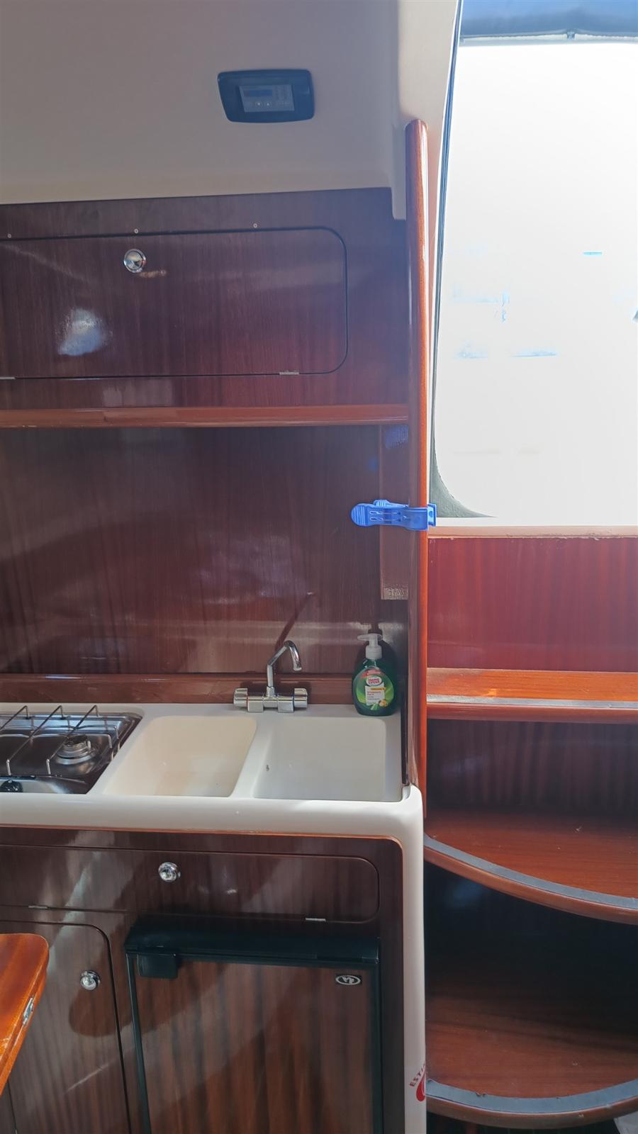 Alarme moteur, Douche de cockpit, Flaps hydrauliques (N°2), Plateforme arrière, Pompe de cale automatique, Prise de quai, Connexion eau sous pression à quai, Rollbar, Guindeau électrique, Echelle de bain.