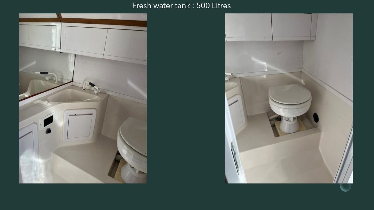 Eau sous pression, Flaps hydrauliques, Pompe de cale manuelle, Prise de quai, Guindeau électrique.