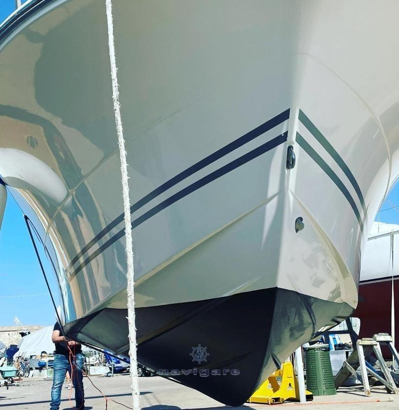 Le chantier naval se concentre fortement sur les matériaux composites. Les aciers sont utilisés pour les tenibènes, les charnières et diverses pièces. Les pièces en fibre de verre sont traitées par pulvérisation dans les moules gelcoat néopentyliques, ce qui offre une haute résistance au phénomène d’osmose, sur lequel la structure en fibre de verre imbibée de résines liquides de type orthophtalique et isophtalique est ensuite stratifiée en fonction des points de la coque et de leur proximité ou non avec la surface de l’eau. Aux points les plus sollicités, le chantier insère des renforts coremat et balsa. Entre la coque et le pont est injecté de la mousse à cellules fermées, ce qui augmente l’isolation acoustique de la coque, tandis que pour certains composants (comme la console), le système « injection » est adopté. Entre la coque et le pont sont insérés des renforts en bois recouverts de résine, qui forment le squelette de la coque. Les espaces à bord sont assez ergonomiques, en particulier dans les passages avant / poupe et vice versa.