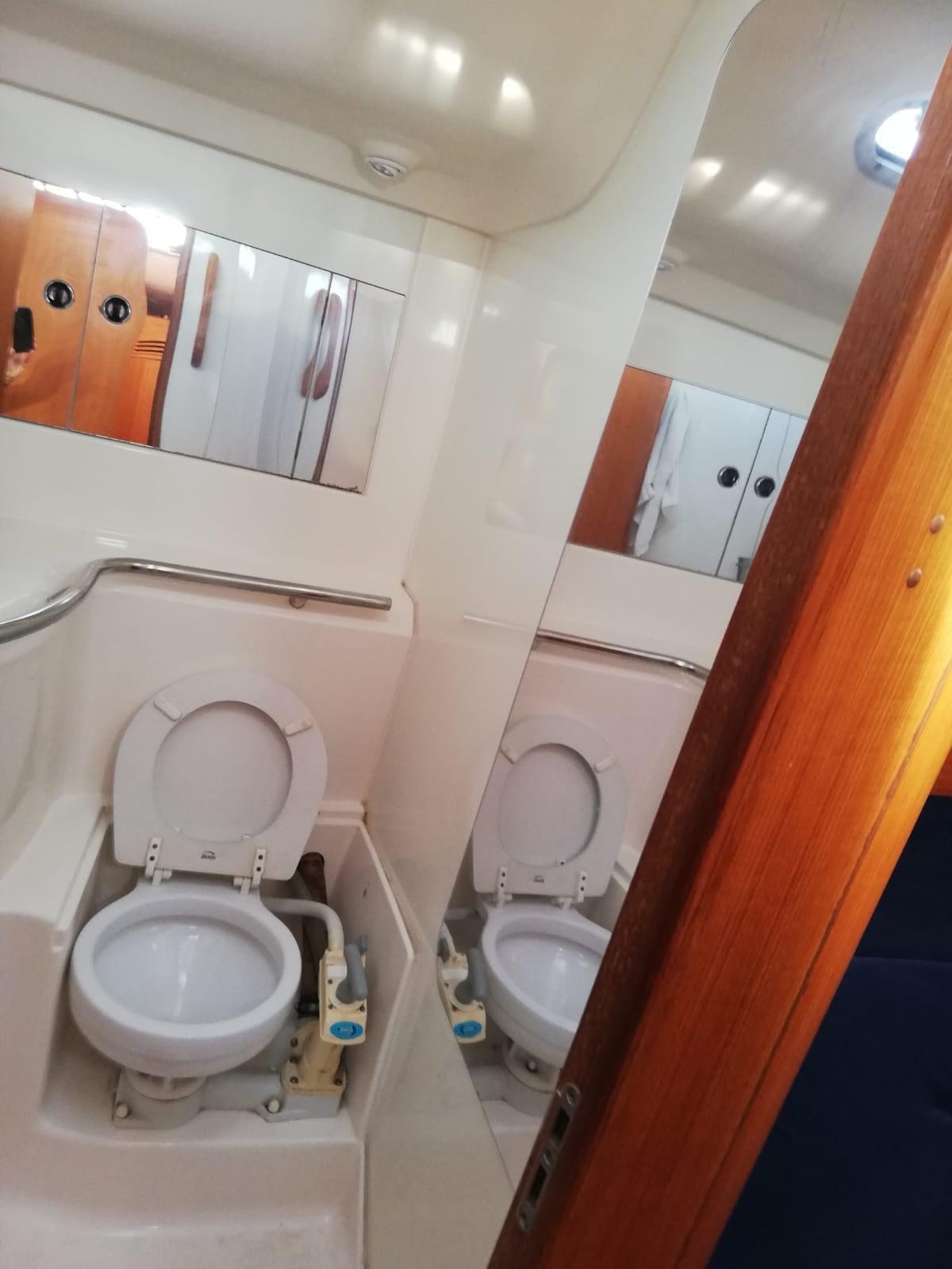 Alarme moteur, 2 Ancre (+ ancora di rispetto + 50 m di catena), Couleur spéciale (blu), Douche de cockpit, Éolienne (eolico JRC), Panneau solaire, Plateforme arrière, Pompe de cale automatique, Cockpit en teck, Prise de quai, Connexion eau sous pression à quai, Guindeau électrique, Gréement Rod (originale), Echelle de bain, Chaise support HB, table de cockpit, Annexe, 4 Winch, 2 Winch électrique (del fiocco).