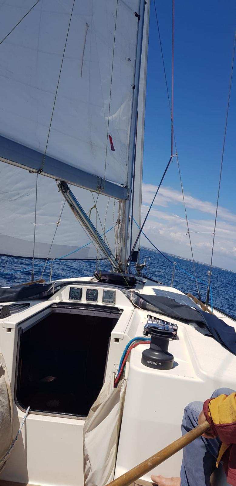 6 winchs et le circuit d’écoute de grand-voile fendue « à l’allemande » sont quelques-unes des solutions compétitives adoptées sur ce cabin cruiser, rapide dans toutes les allures et doté de fortes compétences au près.