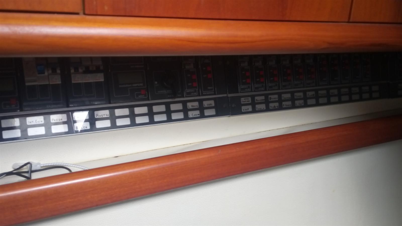 Alarme moteur, Alarme de pompe de cale, Eau sous pression, Passavant en teck, Douche de cockpit, Flaps hydrauliques, Extincteur(s) fixe(s), Indicateurs de flaps, Éclairage de courtoisie, Spots sous-marins, Plateforme arrière, Pompe de cale automatique, Cockpit en teck, Prise de quai, Onduleur, Rollbar, Guindeau électrique, Echelle de bain, table de cockpit, Corne.