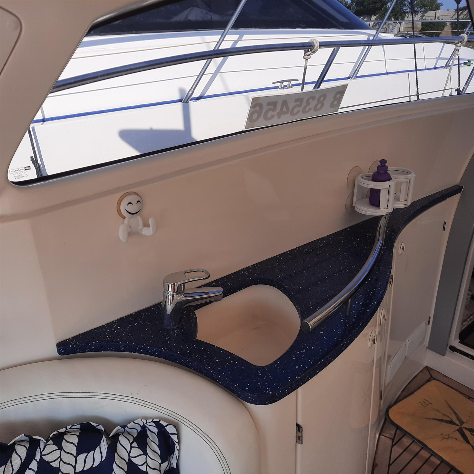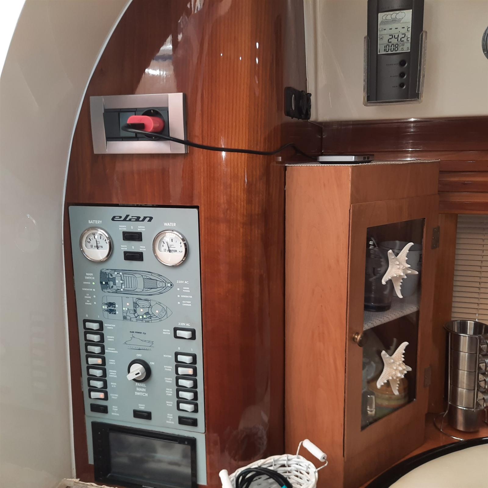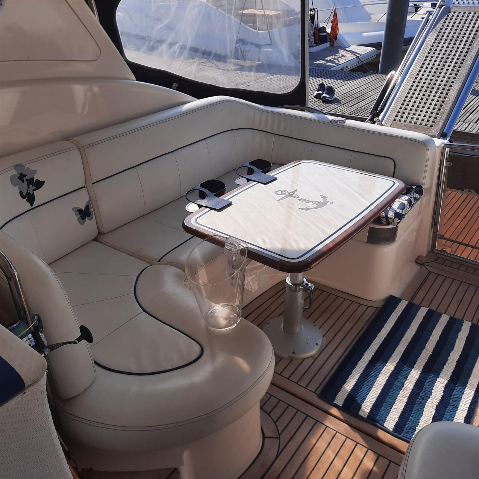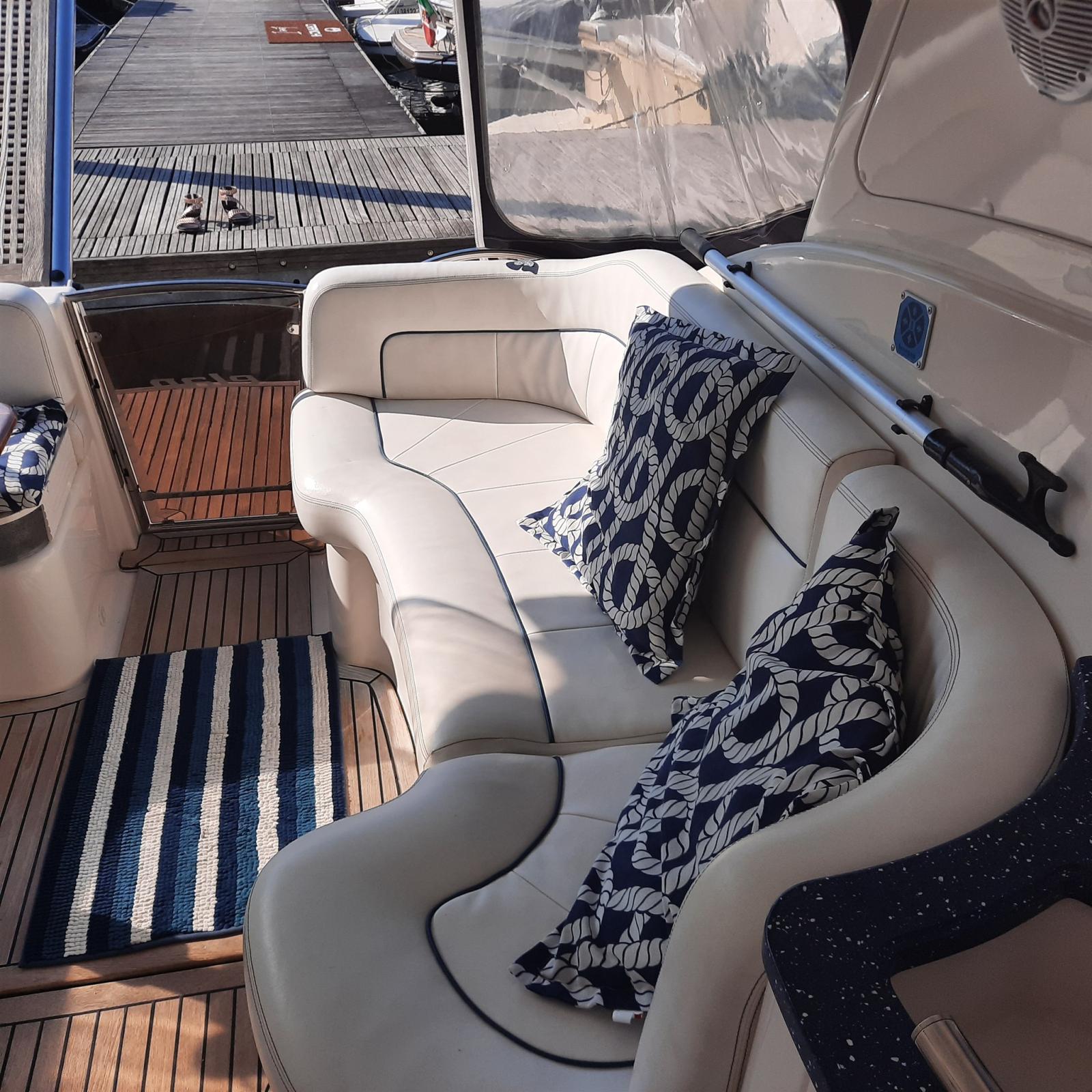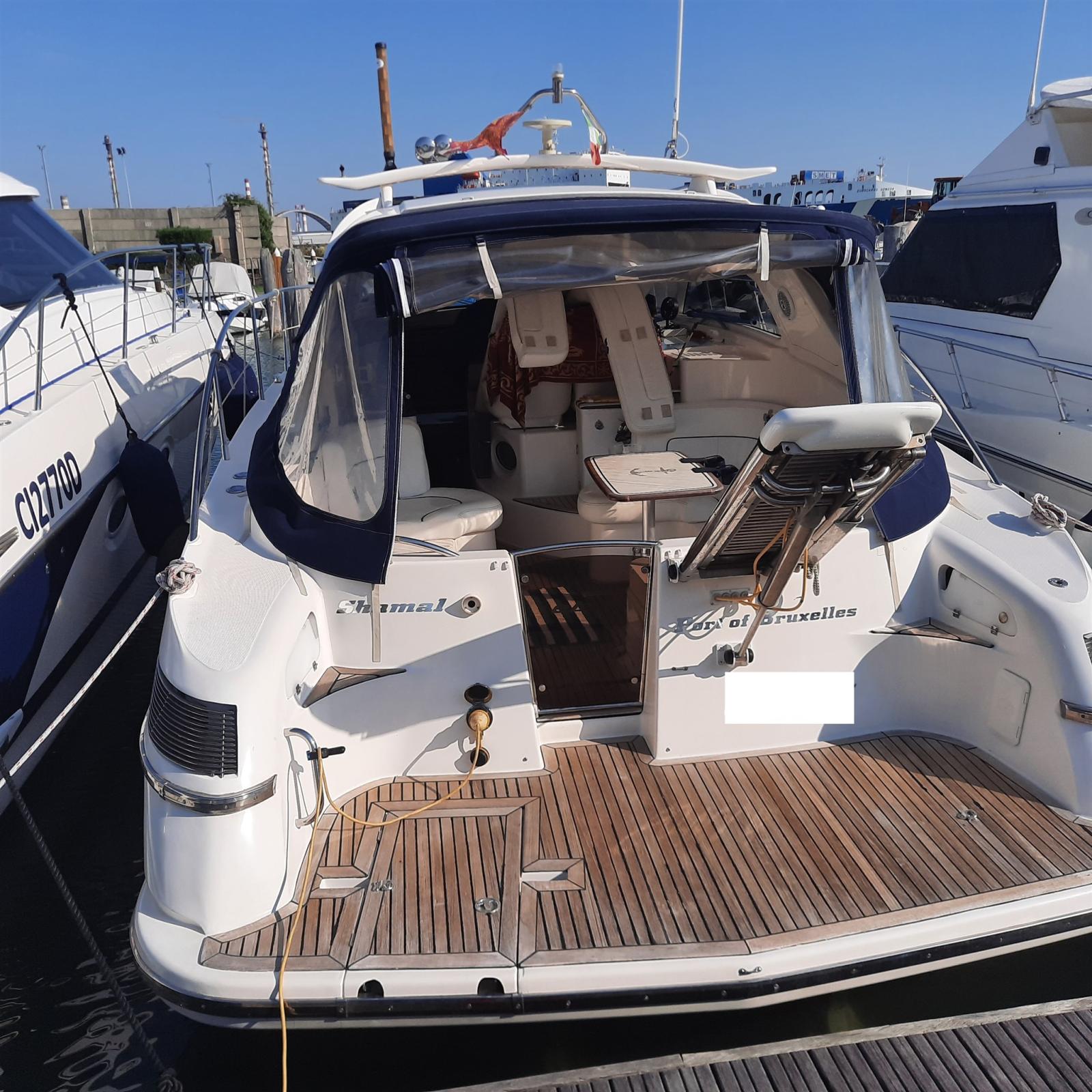 Alarme moteur, Alarme de pompe de cale, Eau sous pression, Douche de cockpit, Extincteur(s) fixe(s), Indicateurs de flaps, Éclairage de courtoisie, Spots sous-marins, Passerelle, Plateforme arrière (TEAK), Pompe de cale automatique, Cockpit en teck, Prise de quai, Rollbar, Guindeau électrique, Echelle de bain, table de cockpit, Corne.