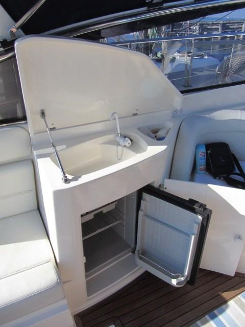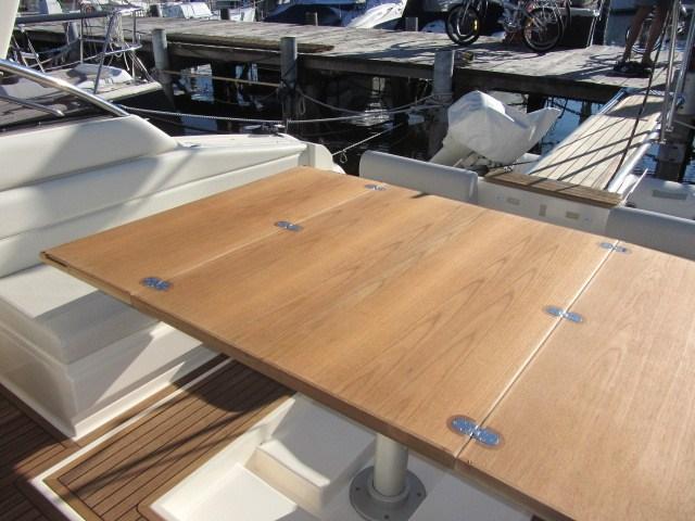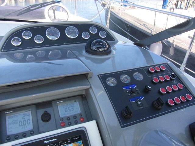 Alarme moteur, Alarme de pompe de cale, Eau sous pression, 6 Batteries, Douche de cockpit, Flaps hydrauliques, Extincteur(s) fixe(s), Indicateurs de flaps, Éclairage de courtoisie, Passerelle (Idraulica), Plateforme arrière, Pompe de cale automatique, Cockpit en teck, Prise de quai, Rollbar, Guindeau électrique, Echelle de bain, table de cockpit, Corne.