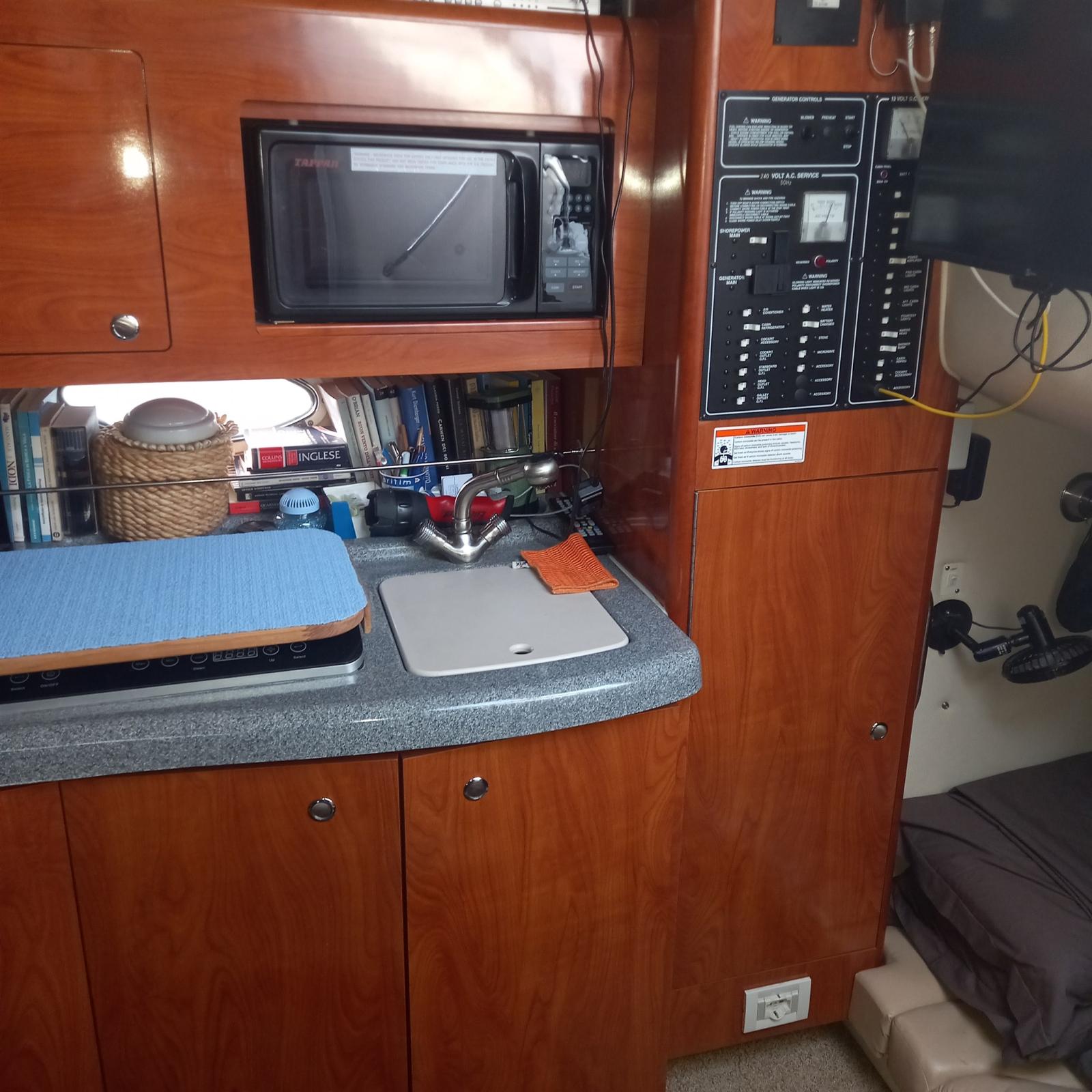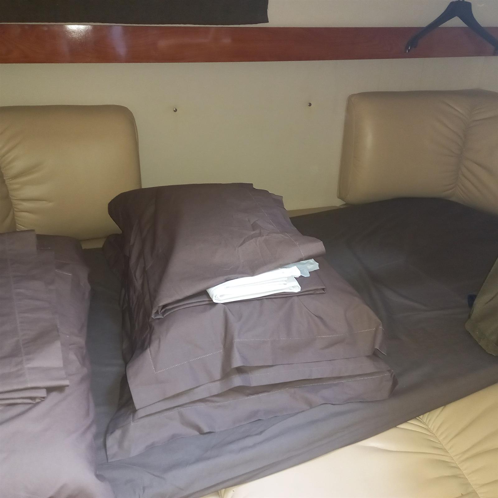 Alarme moteur, Eau sous pression, Douche de cockpit, Flaps hydrauliques, Extincteur(s) fixe(s), Indicateurs de flaps, Éclairage de courtoisie, Plateforme arrière, Pompe de cale automatique, Cockpit en teck, Prise de quai, Onduleur, Rollbar, Guindeau électrique, Echelle de bain, table de cockpit, Corne.