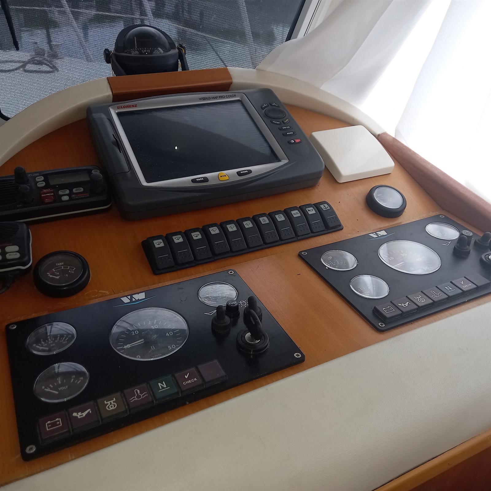 Indicateur d'angle de barre, Antenne radar, Commande électrique, Ordinateur fixe de bord, Moniteur, GPS (Lorenz).