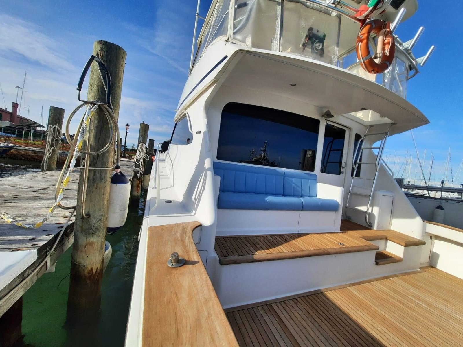Outriggers, Bancs pliants, Porte-cannes (4 Rupp , sui trincarini pozzetto), Bac à vif, Bac à poissons (2 nel pavimento pozzetto).