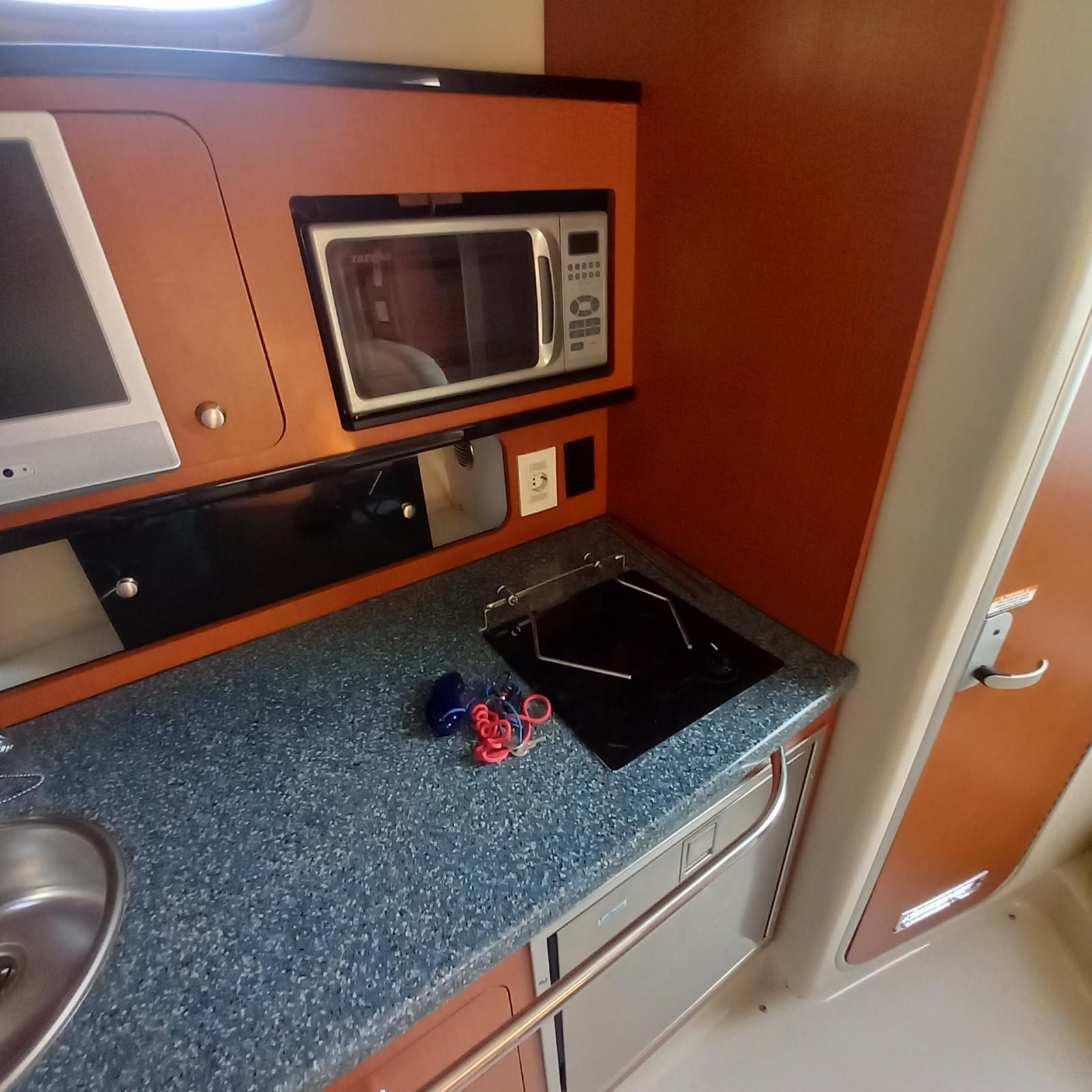 Alarme moteur, Eau sous pression, Douche de cockpit, Phare de poursuite, Flaps hydrauliques, Extincteur(s) fixe(s), Indicateurs de flaps, Éclairage de courtoisie, Passerelle, Plateforme arrière, Prise de quai, Connexion eau sous pression à quai, Rollbar, Guindeau électrique, Echelle de bain, table de cockpit, Corne.