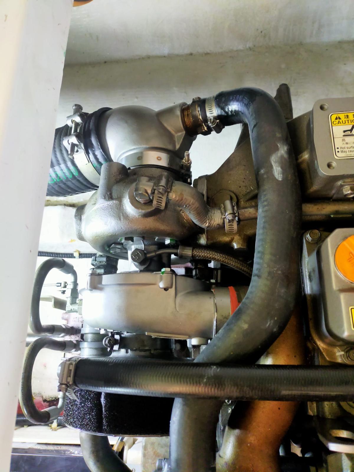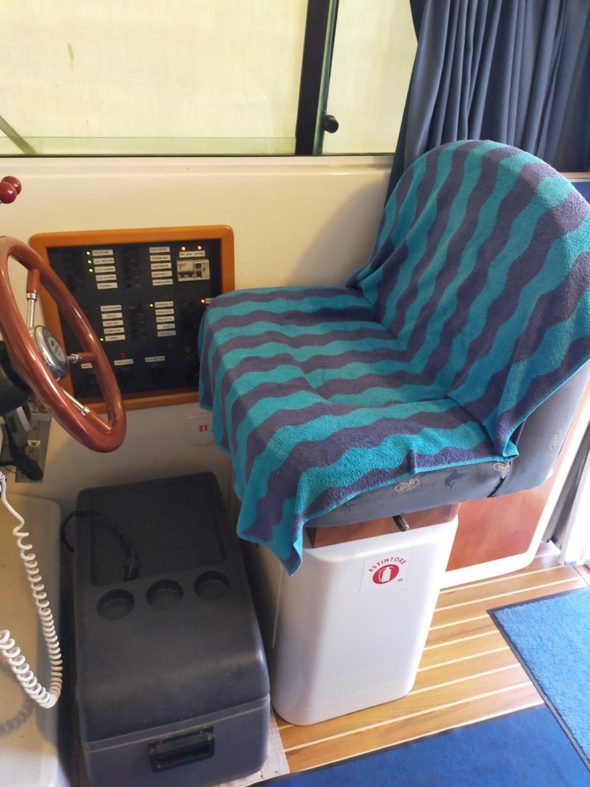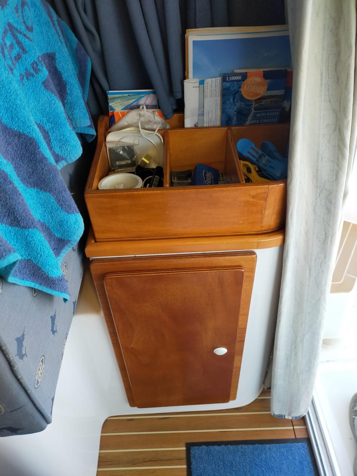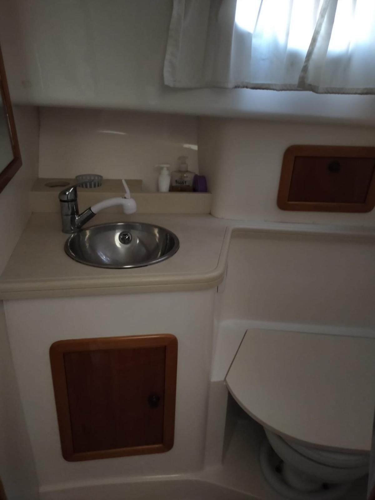 Alarme moteur, Alarme de pompe de cale, Eau sous pression, Chargeur de batterie (2023), Douche de cockpit, Phare de poursuite, Flaps hydrauliques, Extincteur(s) fixe(s), Indicateurs de flaps, Éclairage de courtoisie, Spots sous-marins, Panneau solaire, Passerelle, Plateforme arrière, Pompe de cale automatique, Prise de quai, Connexion eau sous pression à quai, Guindeau électrique, Echelle de bain, Selles pour Annexe, Système de filtration des eaux usées, Table pliante de salon, Annexe (con FB Honda 2,3 hp), Corne.