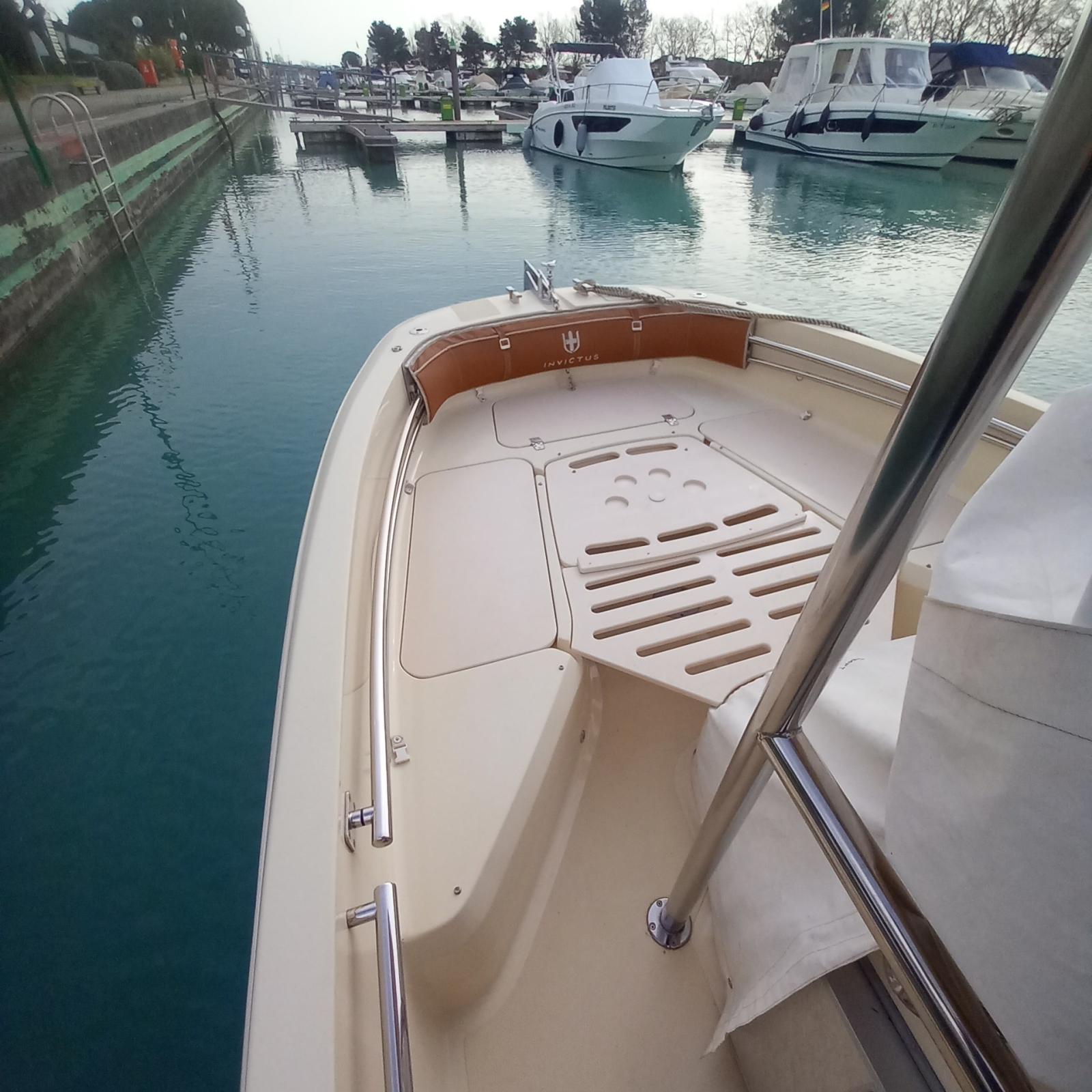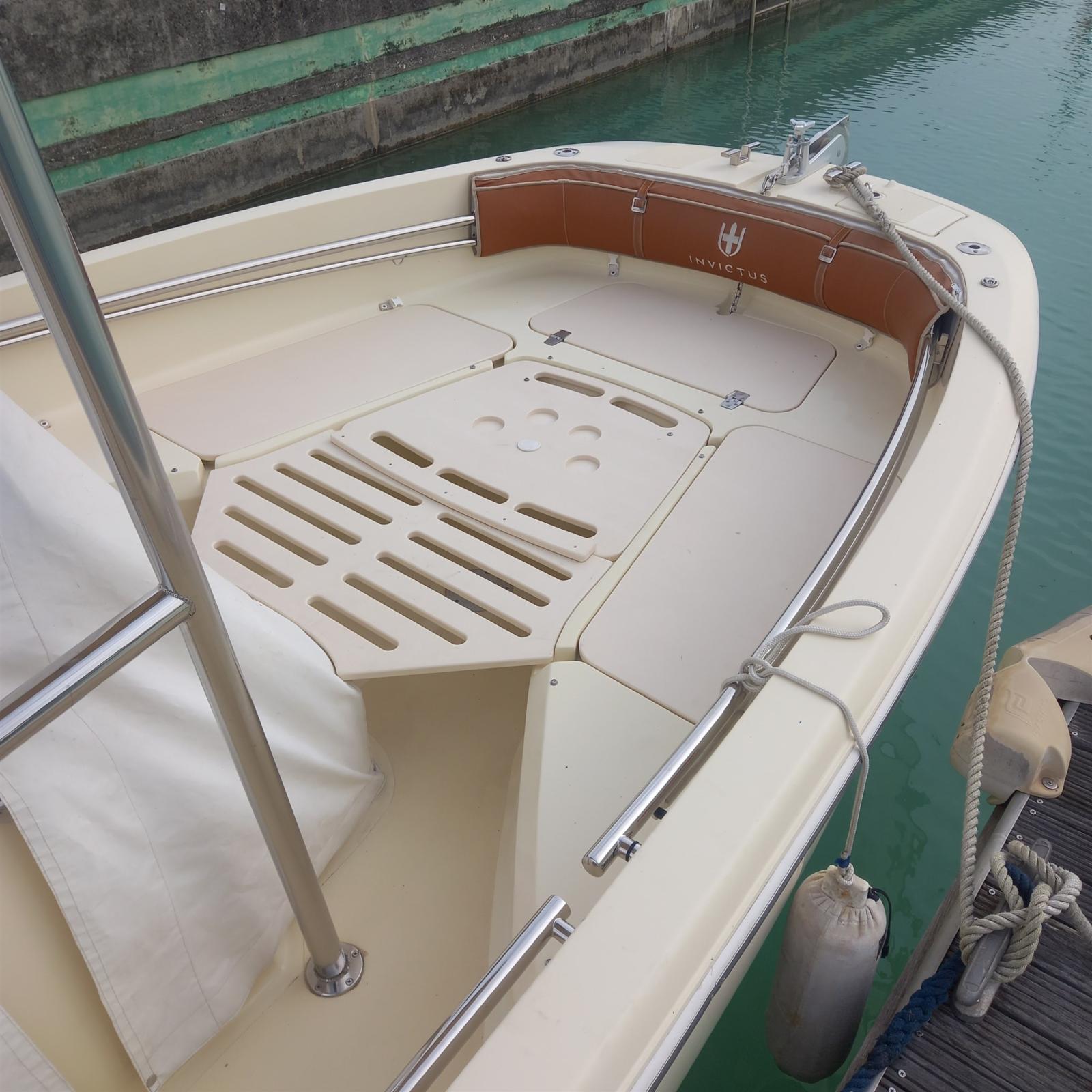 Eau sous pression, Douche de cockpit, Éclairage de courtoisie, Spots sous-marins, Plateforme arrière, Pompe de cale automatique, Prise de quai, Guindeau électrique, Echelle de bain, table de cockpit, Corne, T-Top.
