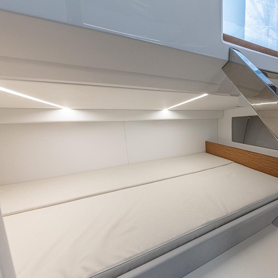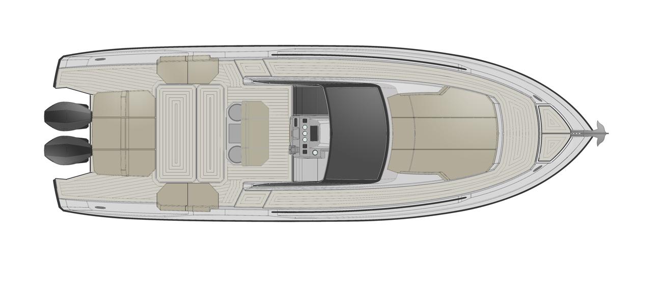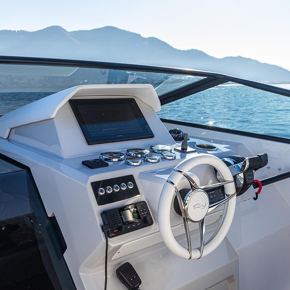Grands espaces sur le pont, symétrie, lignes épurées et luminosité à l'intérieur : ce sont ses principales caractéristiques ainsi que, selon la tradition RIO YACHTS, le souci du détail, des finitions et des matériaux de qualité.