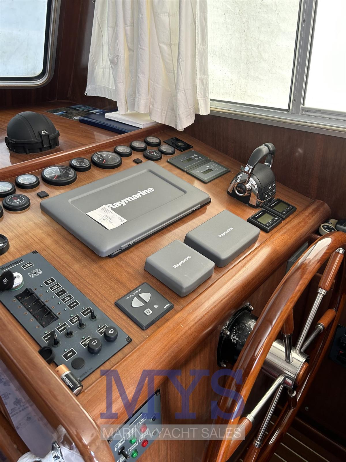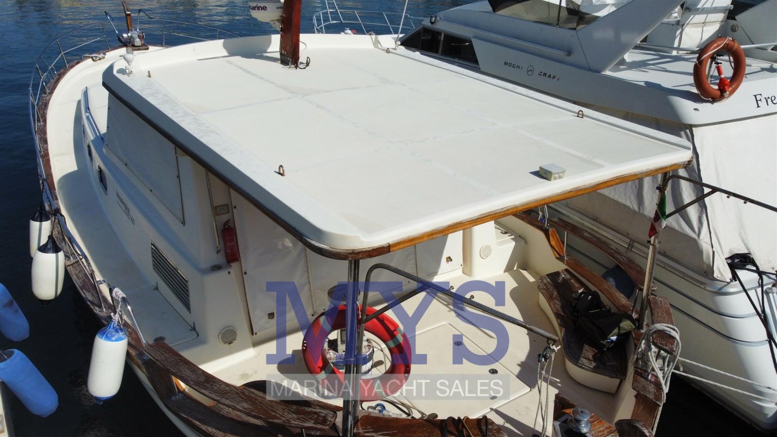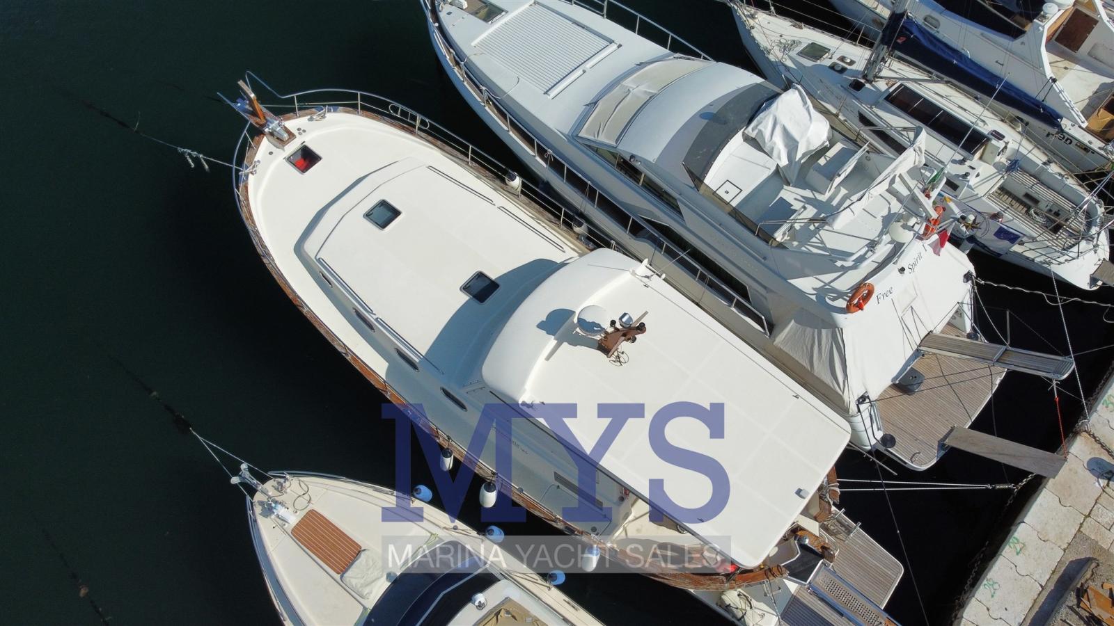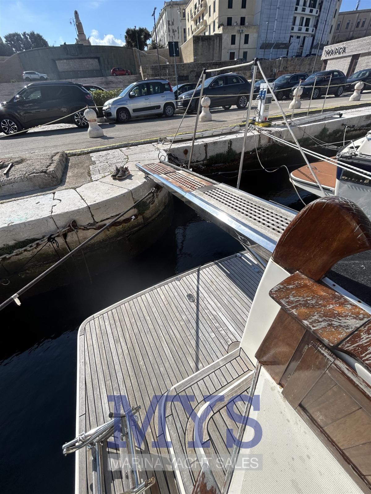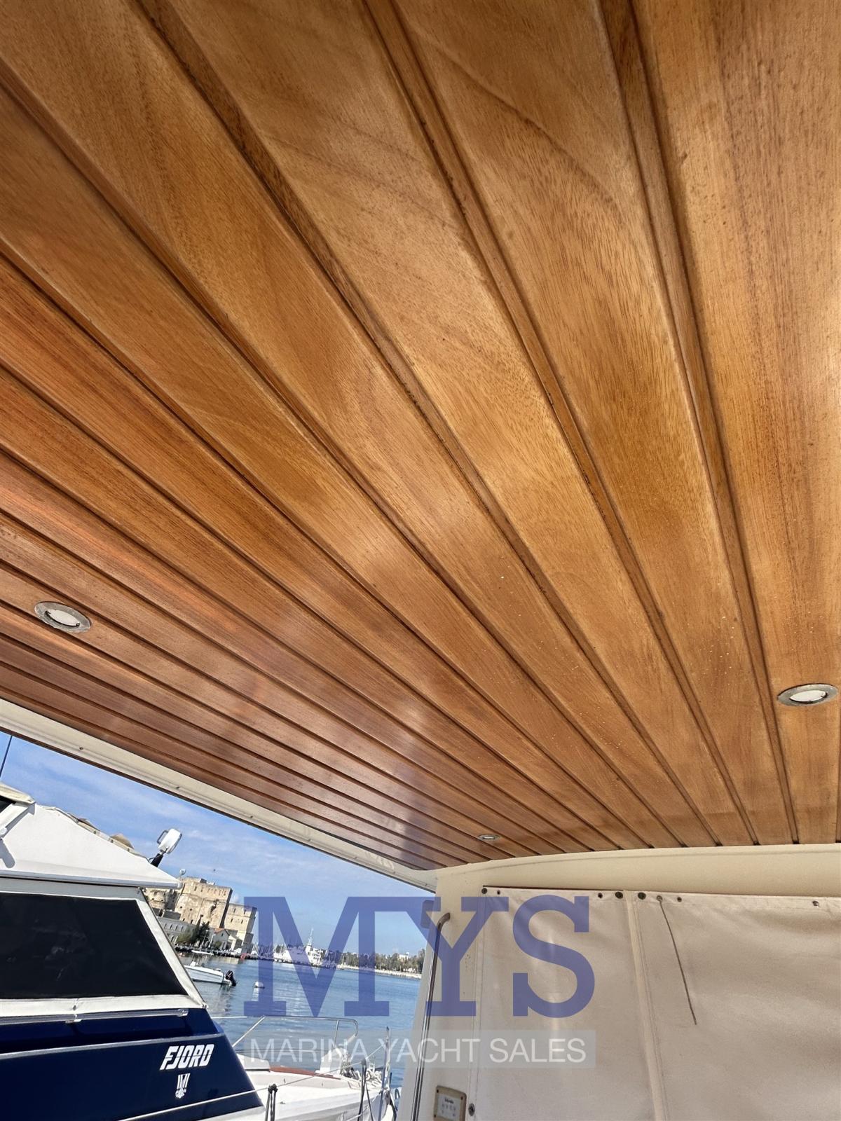 Alarme de pompe de cale, Eau sous pression, Passavant en teck, Douche de cockpit, Flaps hydrauliques, Hard top, Lavage de chaine, Passerelle (Idraulica Nuova nel 2020), Plateforme arrière (in Teak), Pompe de cale automatique, Pompe de cale manuelle, Cockpit en teck, Prise de quai, Guindeau électrique, Annexe (Nuovo 2020), Corne, Winch électrique avant.