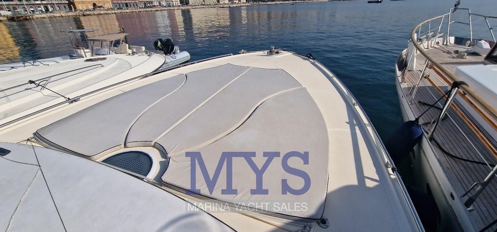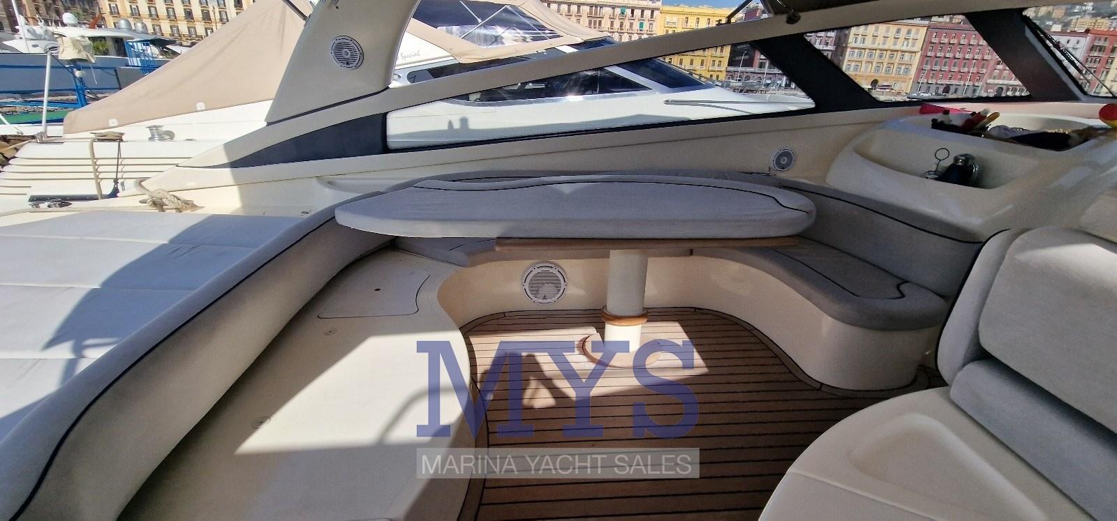Alarme gaz, Alarme moteur, Alarme de pompe de cale, Ancre (Acciaio inox), Ouverture du compartiment moteur électrique, Eau sous pression, 8 Batteries, Douche de cockpit, Flaps hydrauliques, Bossoirs pour annexe, Extincteur(s) fixe(s), Indicateurs de flaps, Lavabo dans le cockpit, Éclairage de courtoisie, Passerelle (a scomparsa), Plateforme arrière (in teak), Pompe de cale manuelle, Cockpit en teck, Prise de quai, Connexion eau sous pression à quai, Onduleur, Guindeau électrique, Echelle de bain, table de cockpit, Annexe (2.80), Corne, 2 Winch électrique arrière, Winch électrique avant.