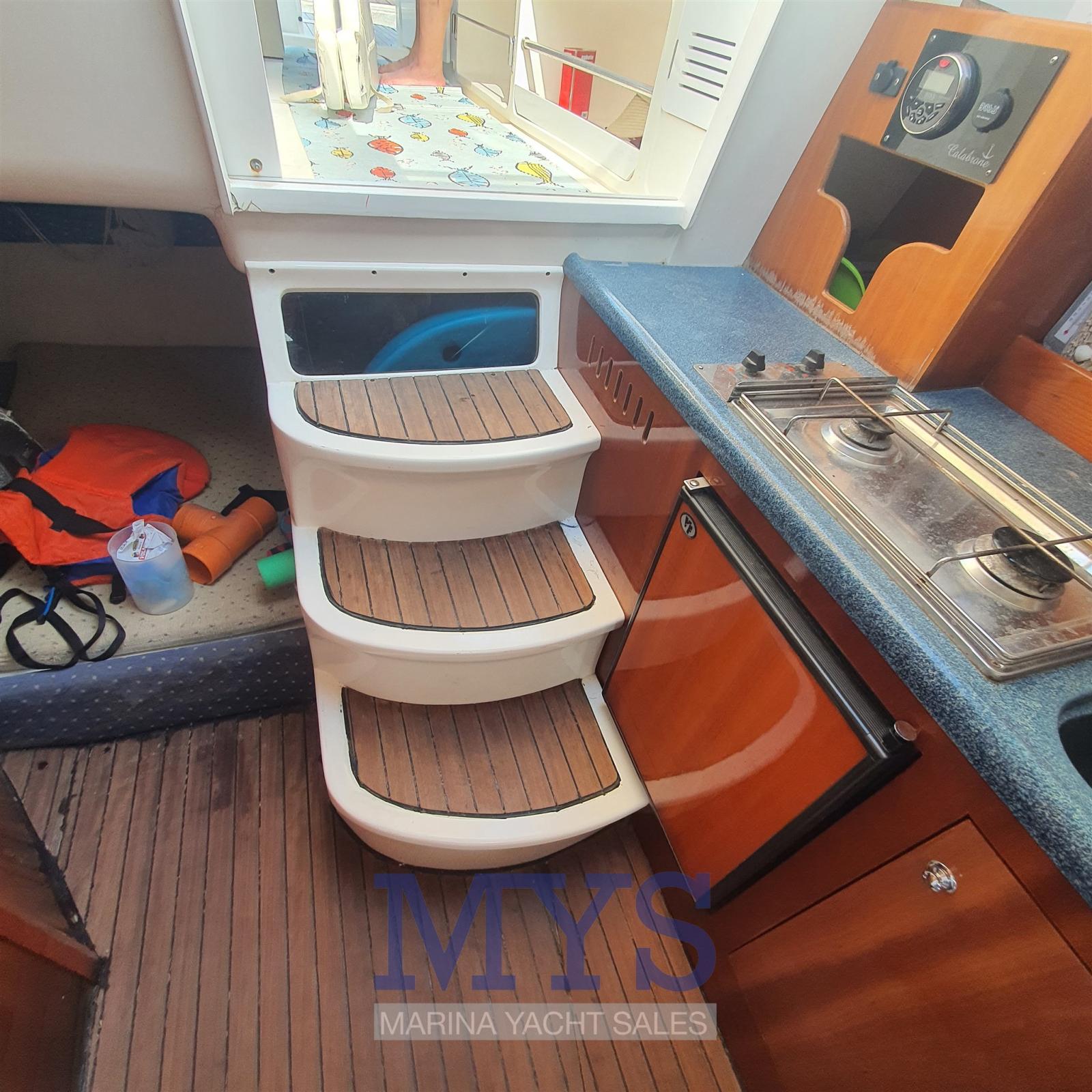 Alarme moteur, Eau sous pression, Douche de cockpit, Plateforme arrière, Pompe de cale automatique, Cockpit en teck, Rollbar, Guindeau électrique, Echelle de bain, table de cockpit, Corne.