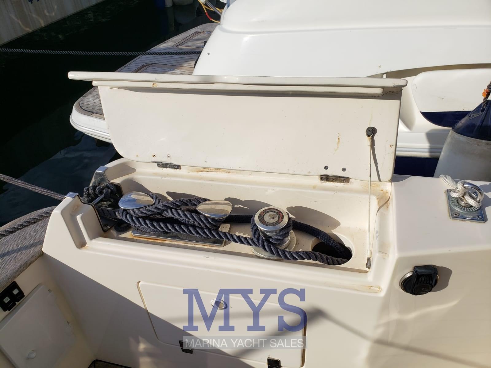 Alarme gaz, Alarme moteur, Alarme de pompe de cale, Ancre (+ catena 80 mt), Eau sous pression, 4 Batteries (Nuove 2024), Chargeur de batterie (Nuovo 2023), 2 Douche de cockpit (Prua e Poppa), Phare de poursuite, Flaps hydrauliques, Extincteur(s) fixe(s), Indicateurs de flaps, Lavage de chaine, Lavabo dans le cockpit, Éclairage de courtoisie (Pozzetto + scala), Spots sous-marins, Passerelle (Idraulica), Plateforme arrière (Rivestita teak 2023), Pompe de cale automatique, Pompe de cale manuelle, Porte latérale, Cockpit en teck, Prise de quai, Connexion eau sous pression à quai, Rollbar, Guindeau électrique, Echelle de bain, table de cockpit, Table pliante de salon, Corne, Winch électrique arrière, Winch électrique avant.