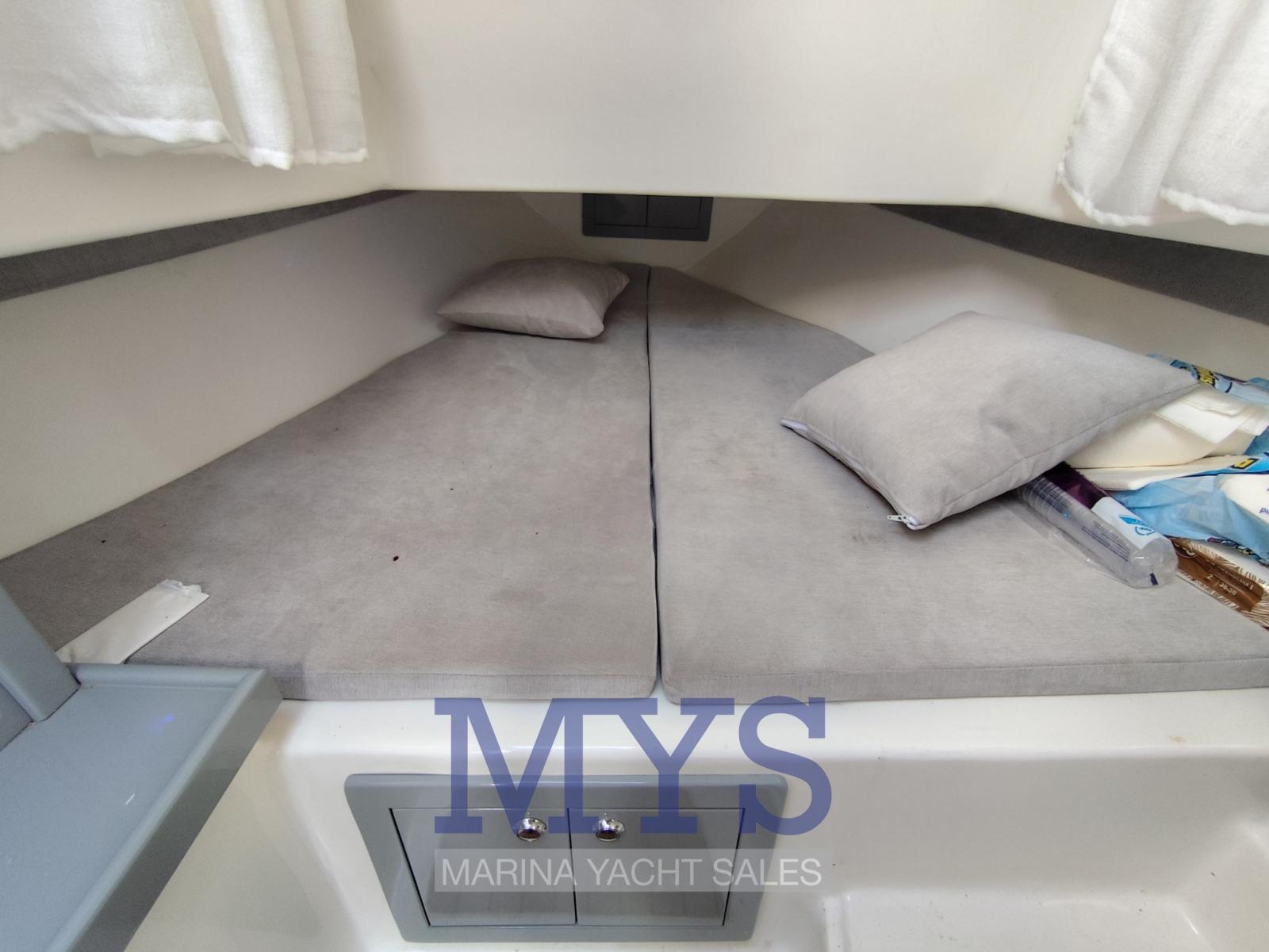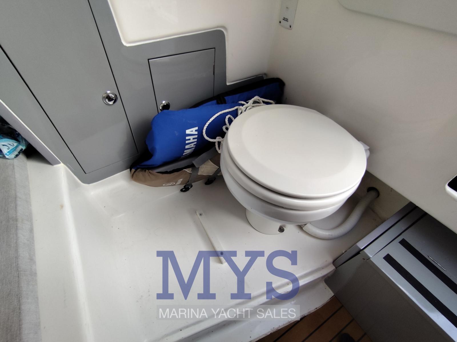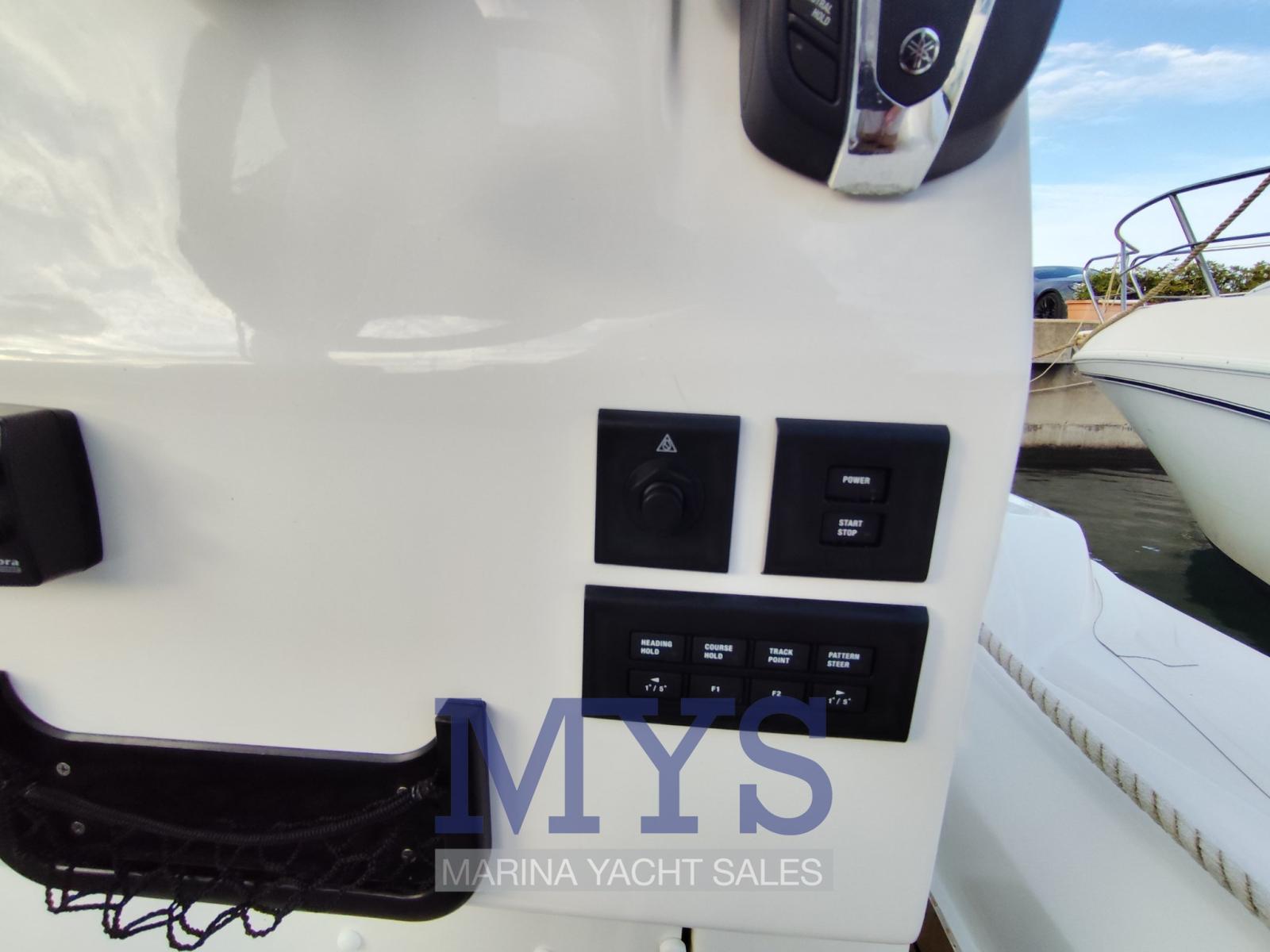 Alarme moteur, Douche de cockpit, Plateforme arrière (fissa), Cockpit en teck, Prise de quai, Rollbar, Guindeau électrique, Echelle de bain, Table.