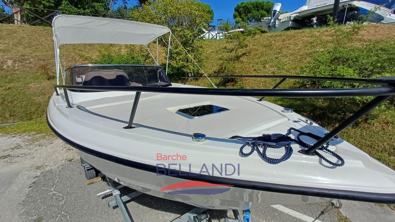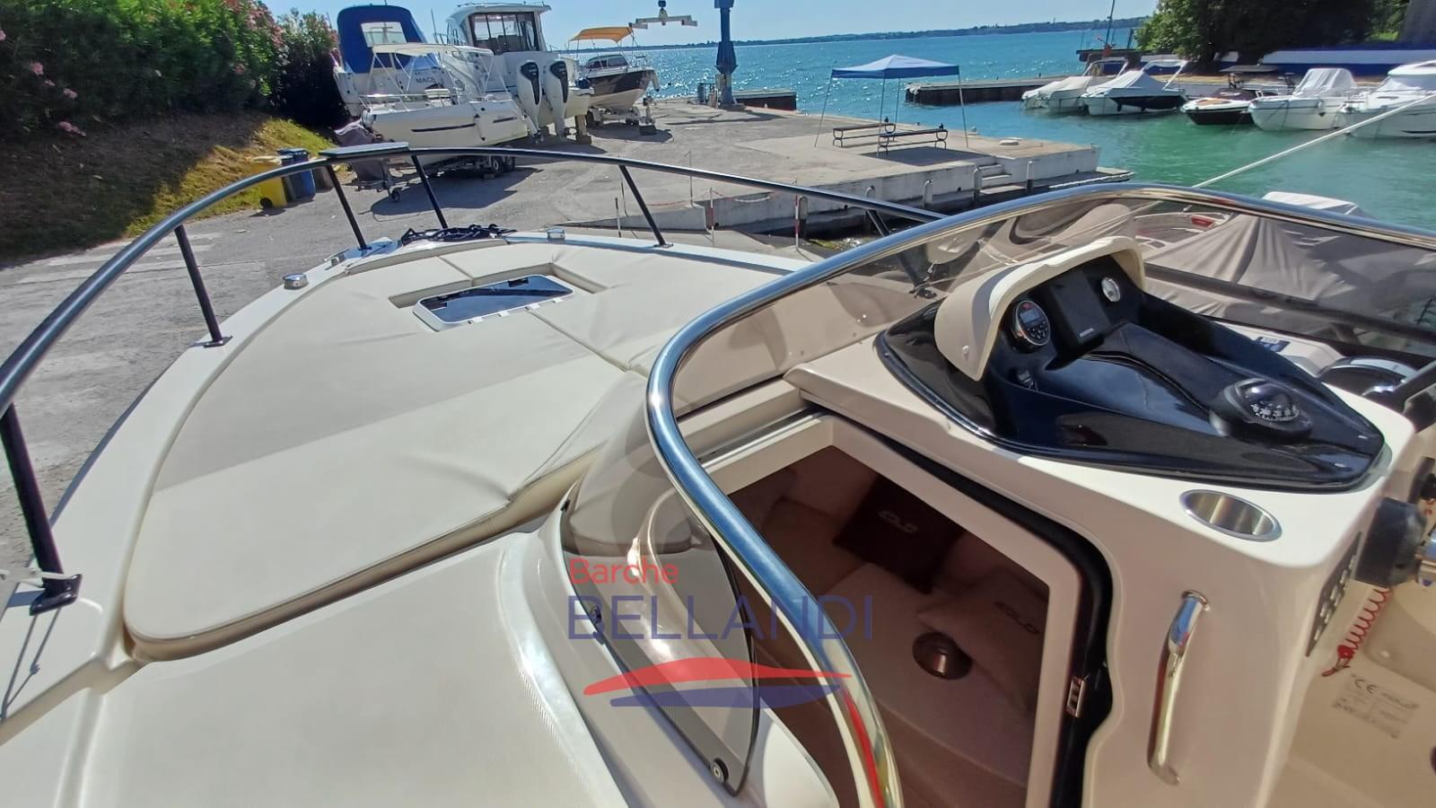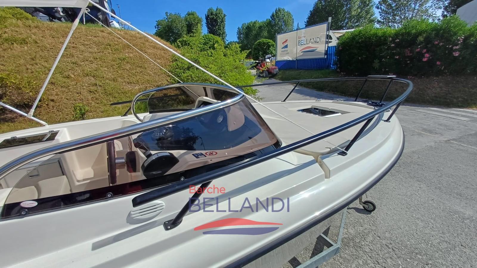 Le bateau est équipé d’un moteur hors-bord de 150 ch qui lui permet d’atteindre une vitesse maximale de 35 nœuds. Il est également équipé d’un pont avant avec bain de soleil, d’un bain de soleil arrière et d’une cabine double.