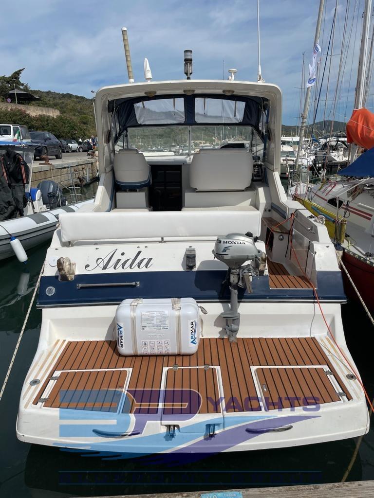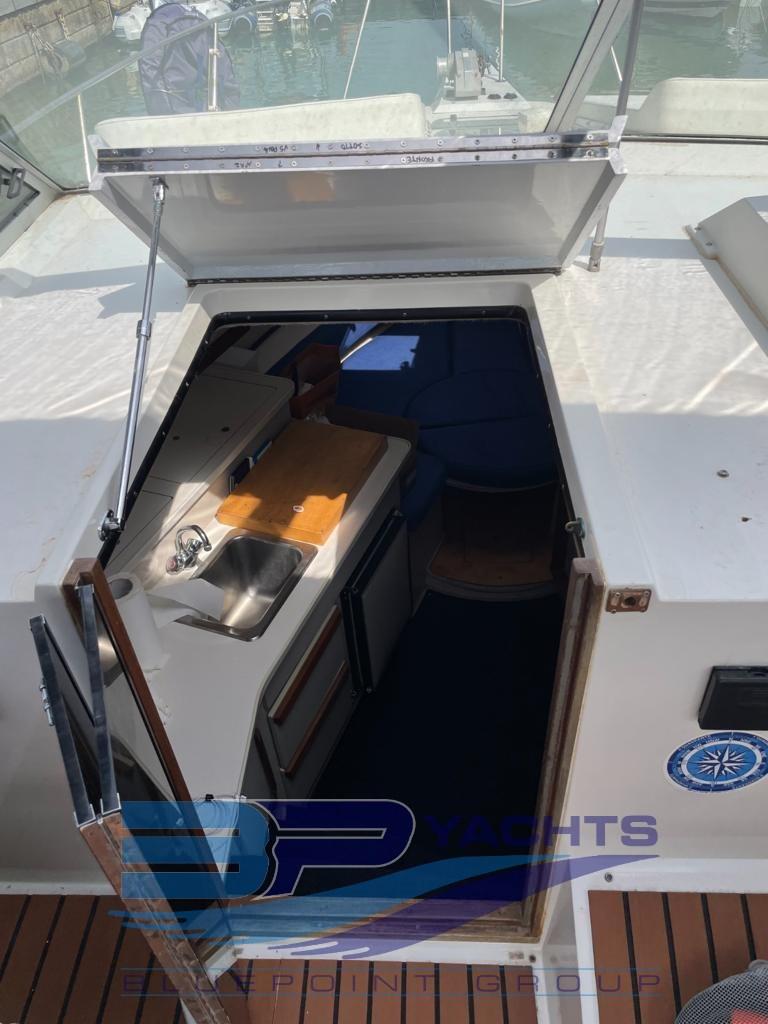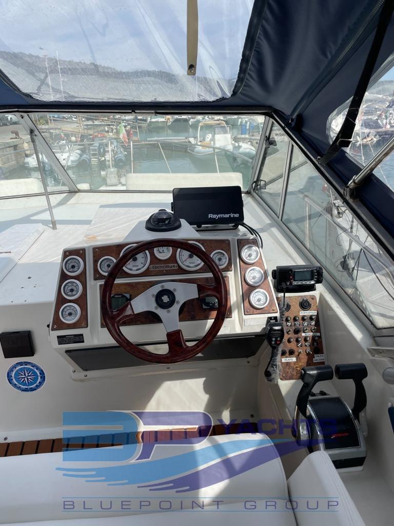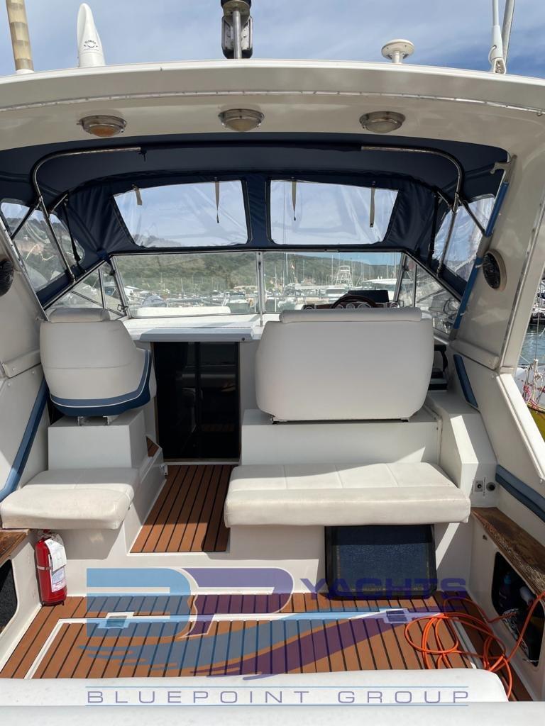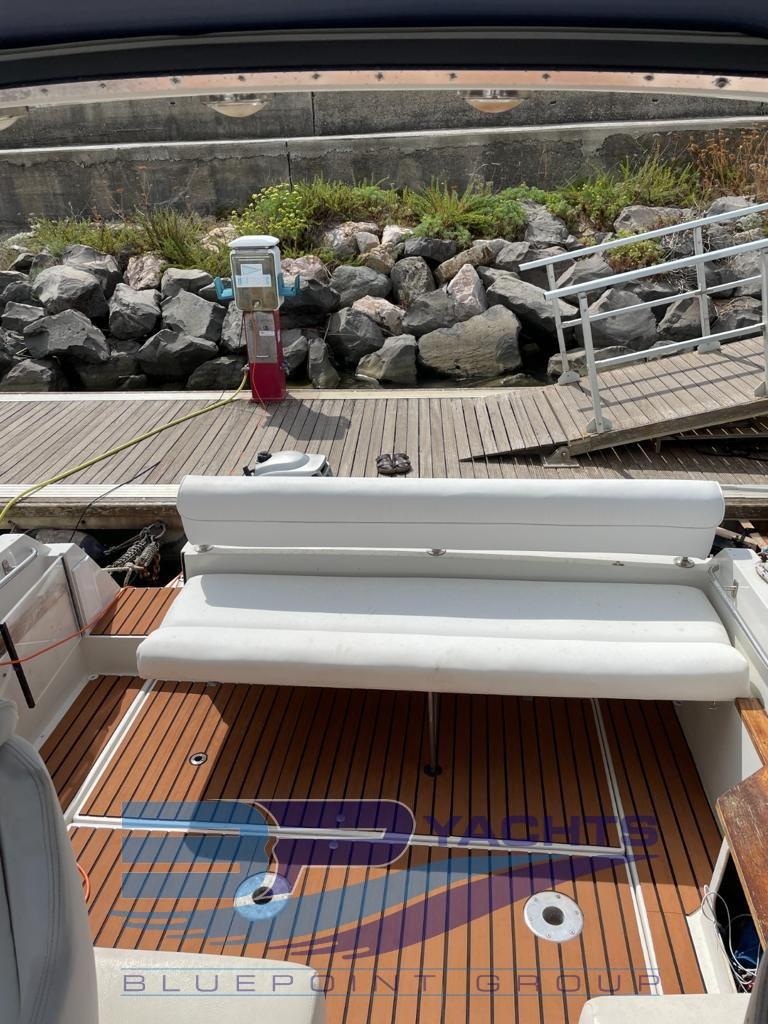 Alarme moteur, Eau sous pression, 3 Batteries (2022), Douche de cockpit, Flaps hydrauliques, Plateforme arrière, Pompe de cale automatique, Cockpit en teck (Sintetico 2022), Prise de quai, Onduleur, Rollbar, Guindeau électrique, table de cockpit.