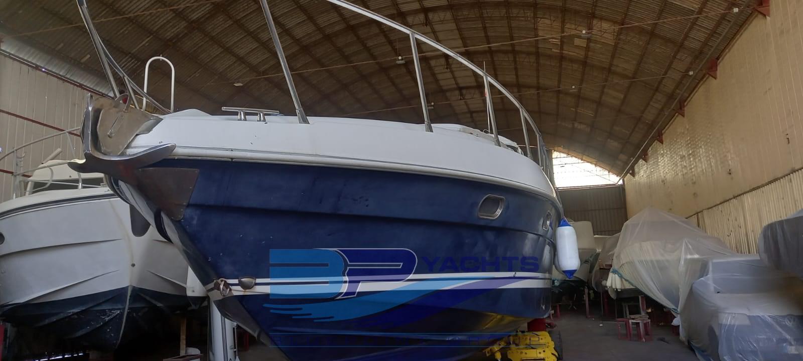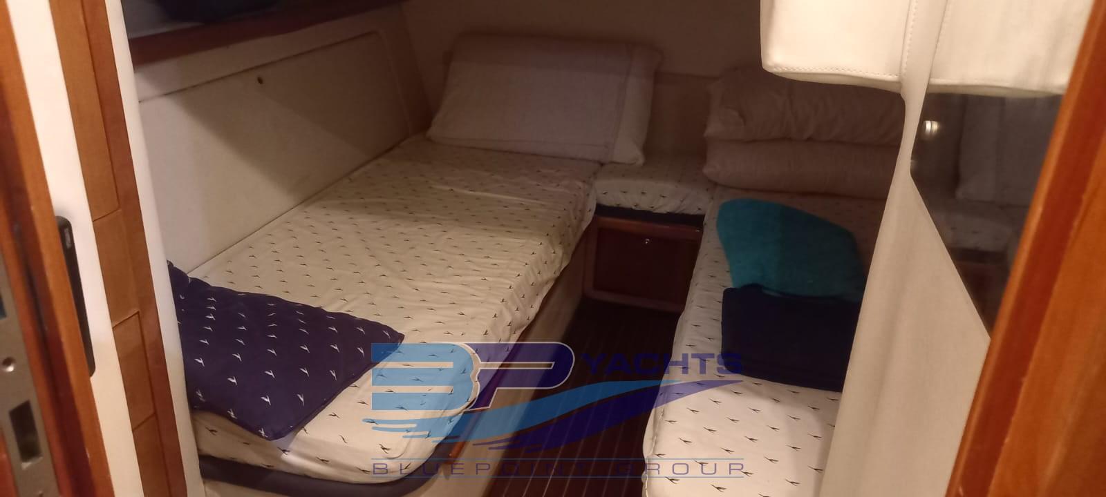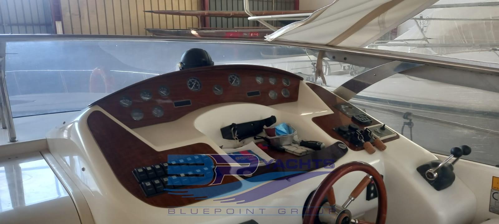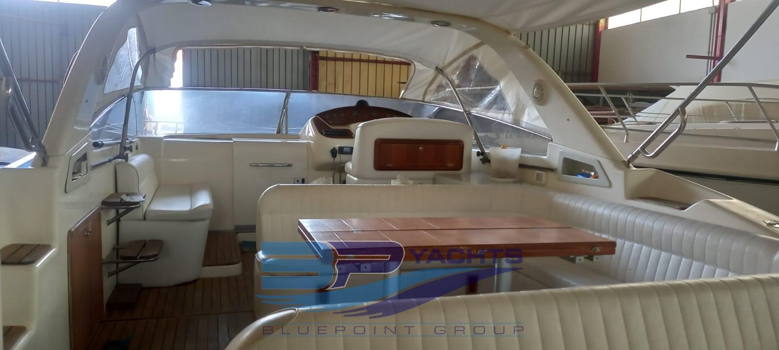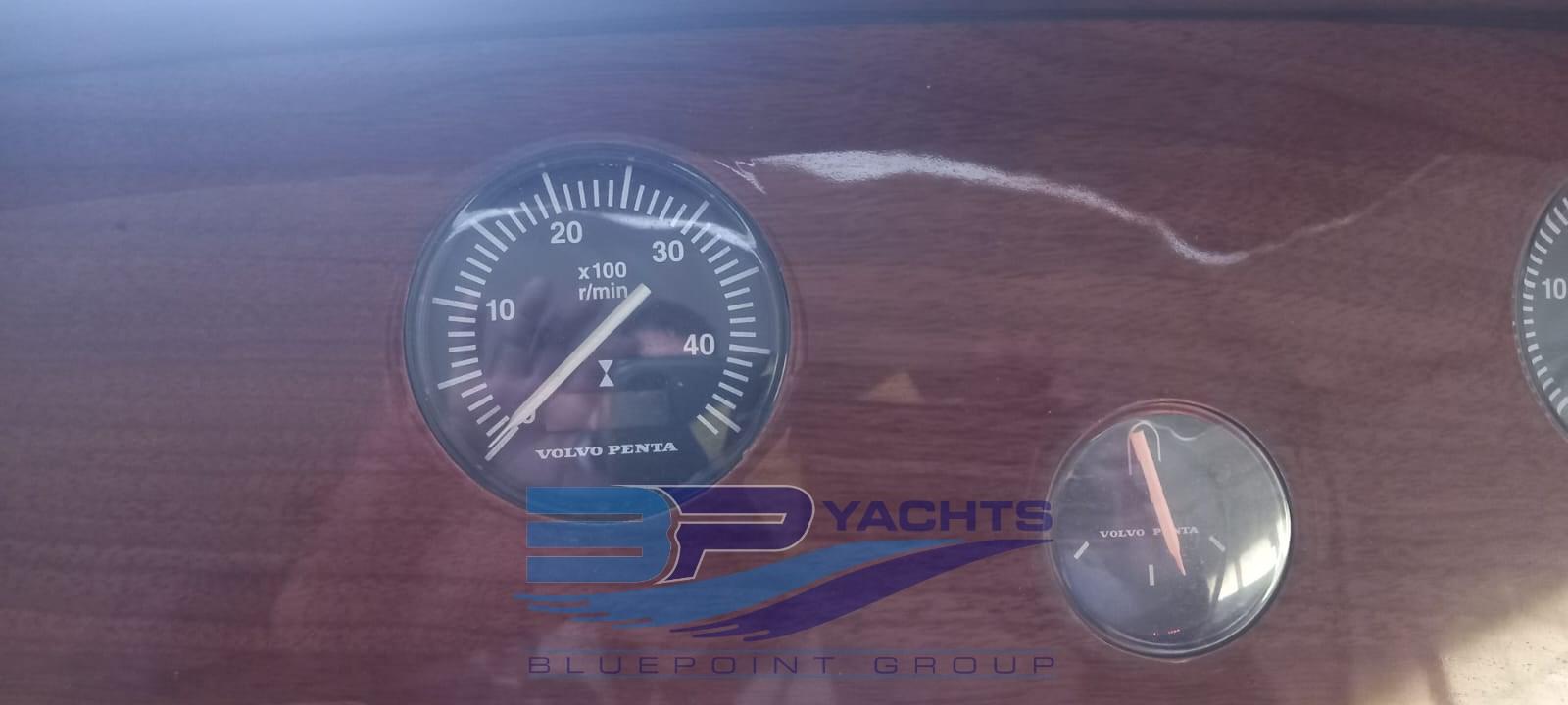 Alarme moteur, Eau sous pression, Douche de cockpit, Flaps hydrauliques, Plateforme arrière, Pompe de cale automatique, Cockpit en teck, Prise de quai, Onduleur, Rollbar, Guindeau électrique, Echelle de bain, table de cockpit, Table pliante de salon.