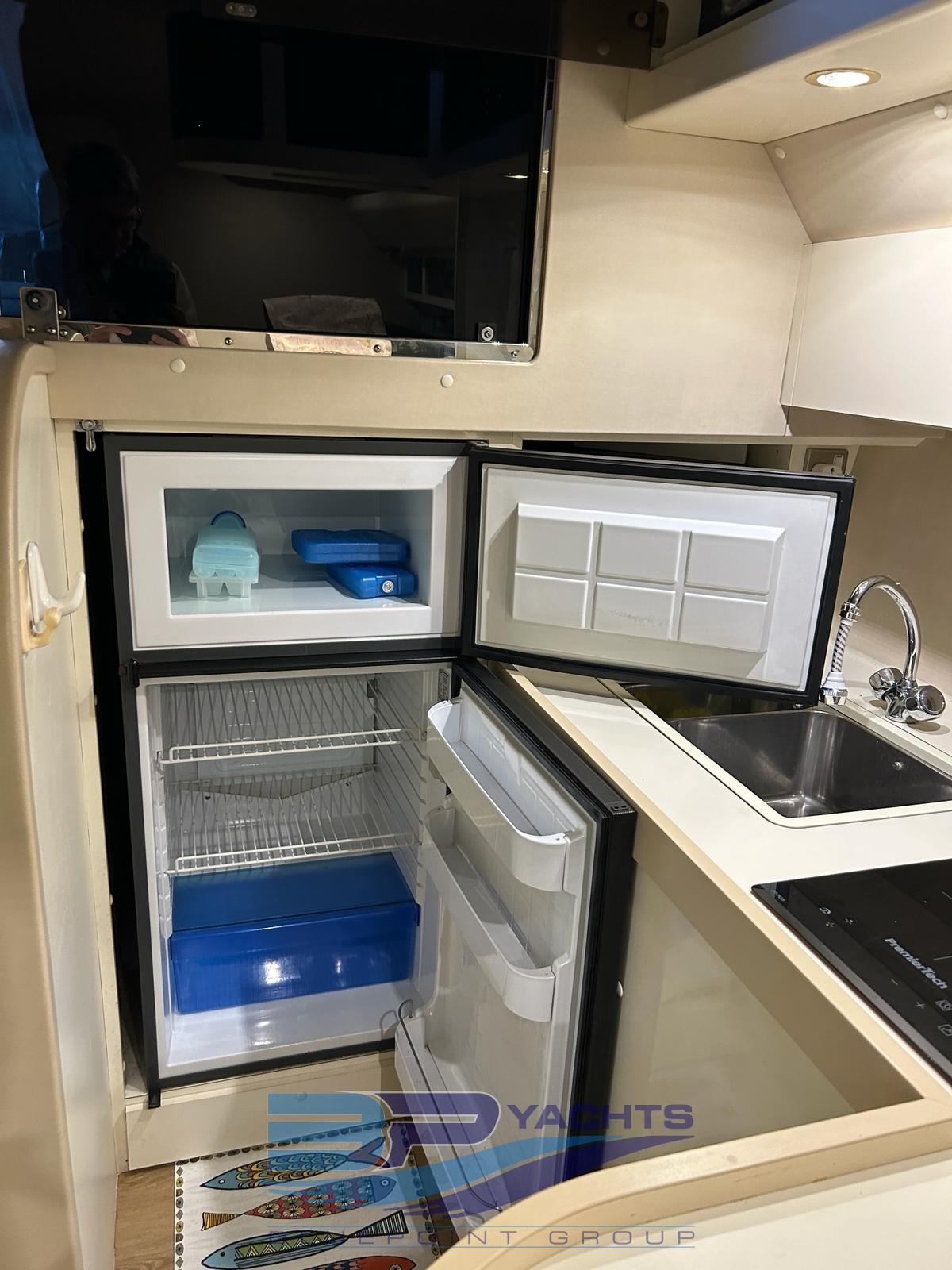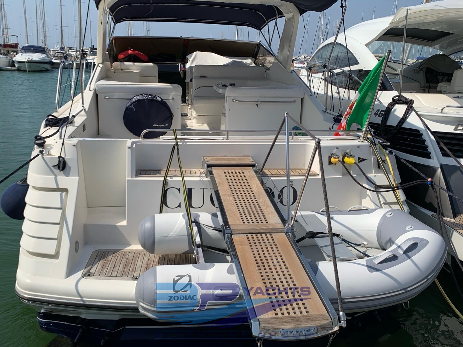 Eau sous pression, Douche de cockpit, Flaps électriques, Lavabo dans le cockpit, Spots sous-marins, Moteur hors-bord pour annexe, Passerelle (Idraulica), Plateforme arrière, Rollbar, Guindeau électrique, Echelle de bain, table de cockpit.