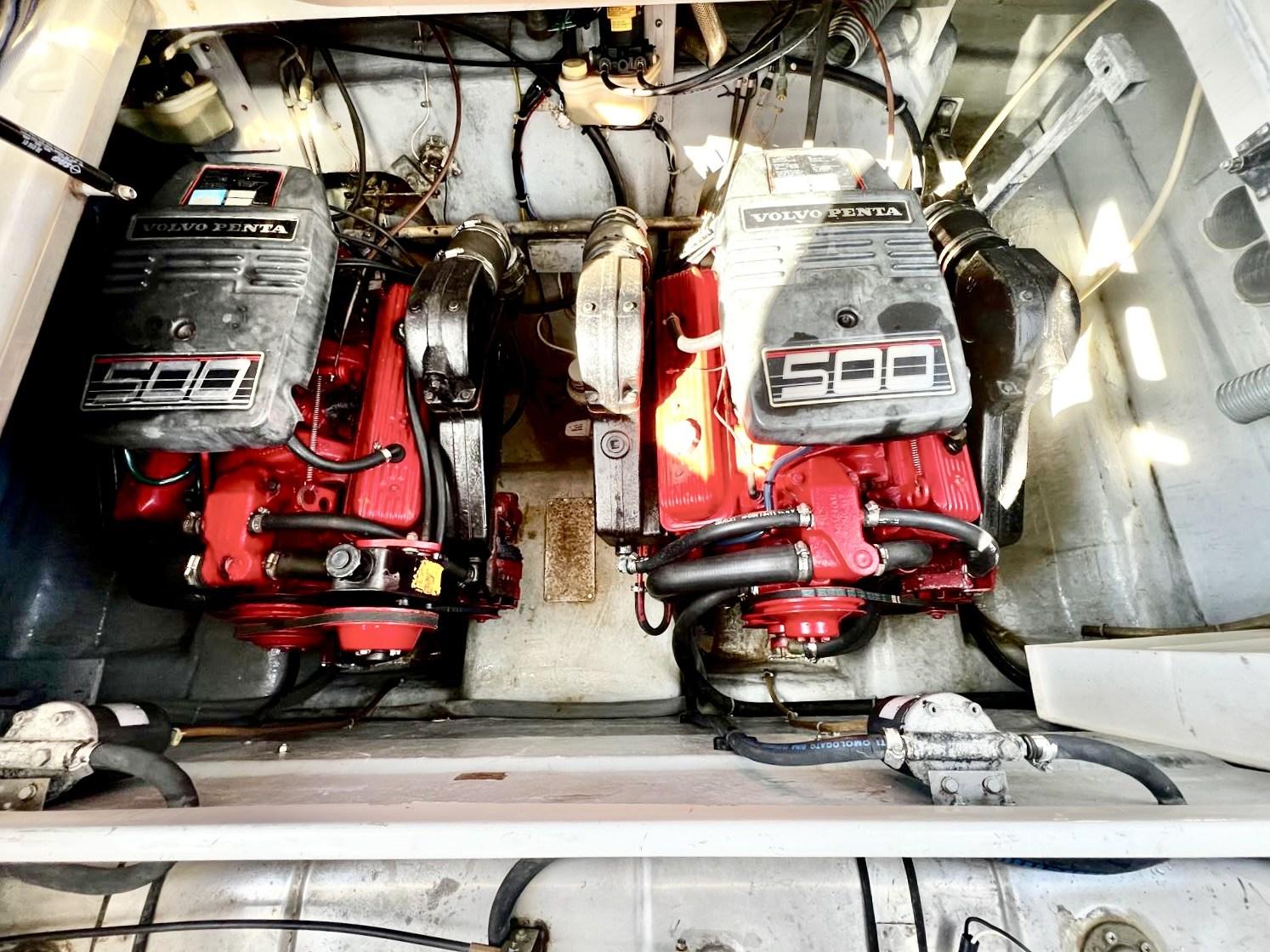 Bateau très confortable avec des intérieurs confortables Paire de moteurs à essence Volvo Penta EFB avec 770 h . Câbles de télécommande 2020 Raiser ok refaits bien équipés
