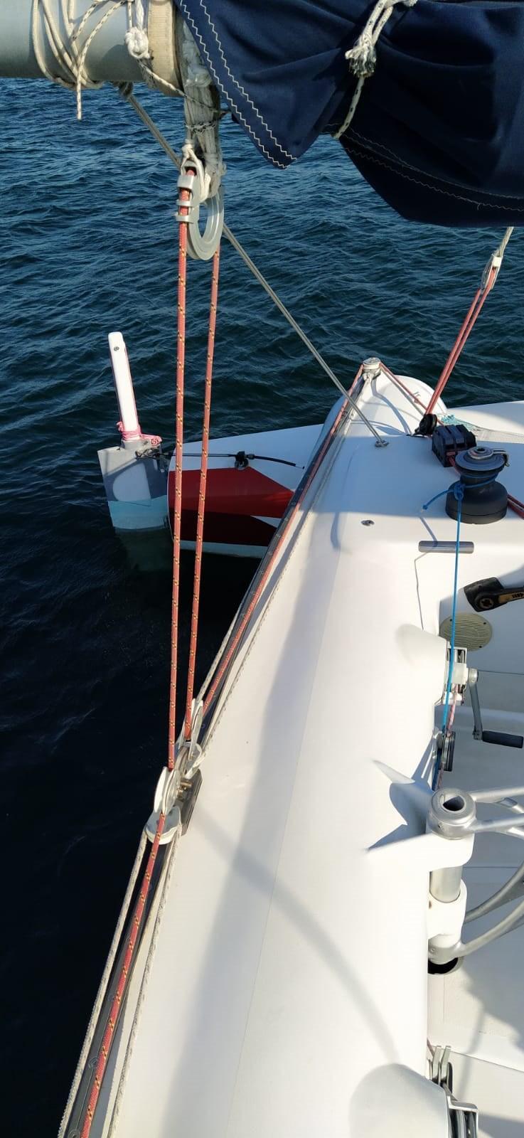 Équipement Gennaker, Enrouleur de foc, Bout-dehors, Chariots à bille de GV, Lazy Bag, barre d'écoute.