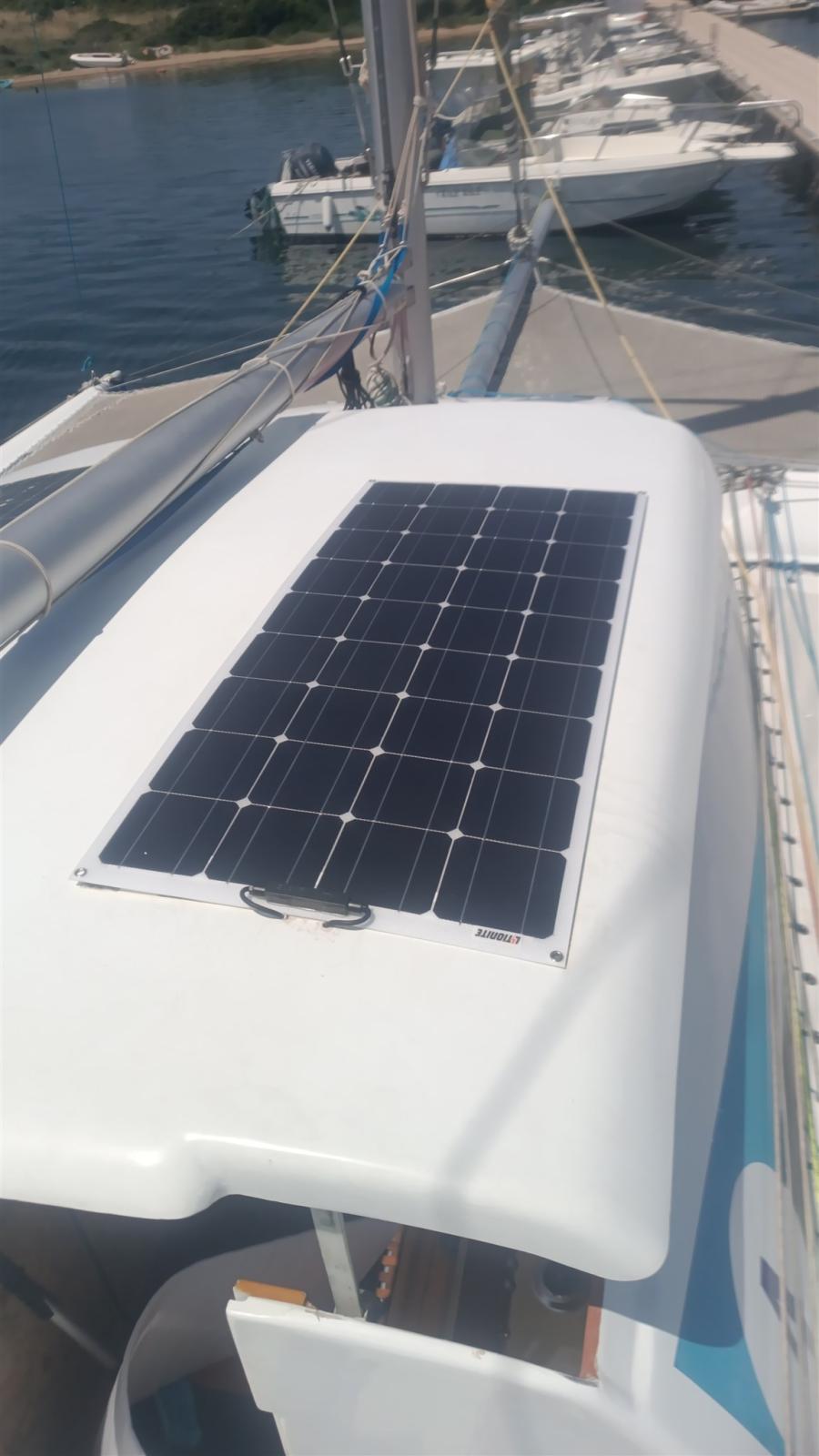 2 Ancre (Fortress + 1 di rispetto), Eau sous pression, 3 Panneau solaire (1 nuovo), Pompe de cale manuelle, Cockpit en teck, Prise de quai, Guindeau électrique (con comando in pozzetto), Gréement en textile (PBO/Kevlar), Echelle de bain, Table pliante de salon, 4 Winch.