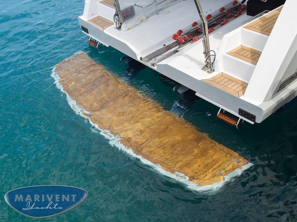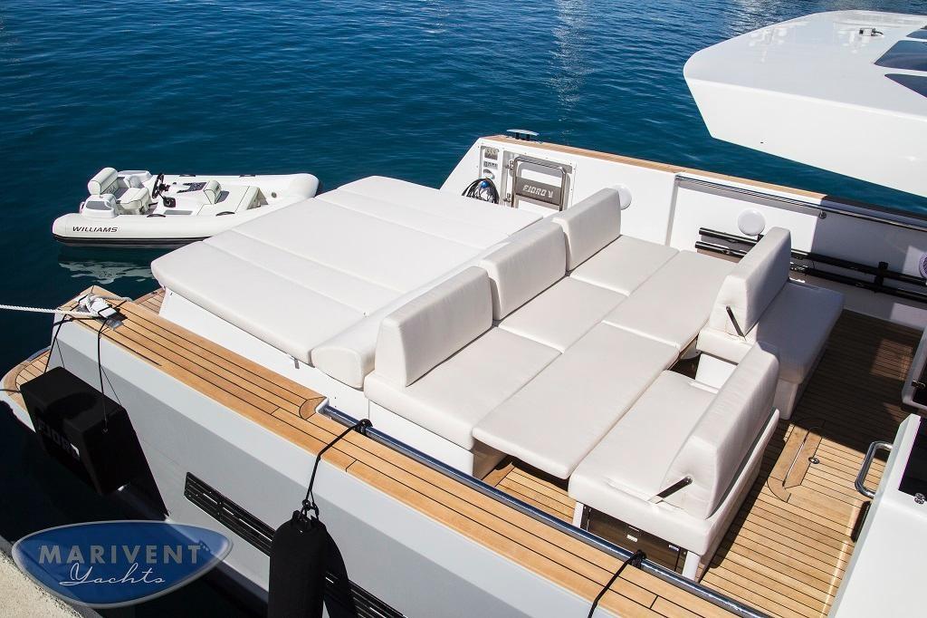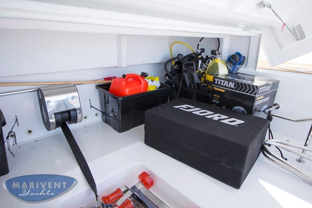 Alarme de pompe de cale, Ancre (20Kg Lewmar DTX), Eau sous pression, 8 Batteries (2x90Ah de motores + 4x260Ah de servicio), 8 Taquets pliants, Système de vidange, Passavant en teck, Couleur spéciale, Douche de cockpit, Phare de poursuite, Garage à annexe (with hydraulic opening), Extincteur(s) fixe(s), Compresseur de plongée, Indicateurs de flaps, Lavabo dans le cockpit, Éclairage de courtoisie, 4 Spots sous-marins, Passerelle (Besenzoni hydraulic system), Plateforme arrière (HB Hydraulic tender lift system), 4 Pompe de cale automatique, Porte latérale, Cockpit en teck, 2 Prise de quai, Guindeau électrique, Echelle de bain, 2 table de cockpit (convertible into sunpad with electric pedestal and fill in cushion), 2 Filières avec sortie latèrale (and removable hand rails for side stairs), Corne, Winch électrique (for tender garage).
