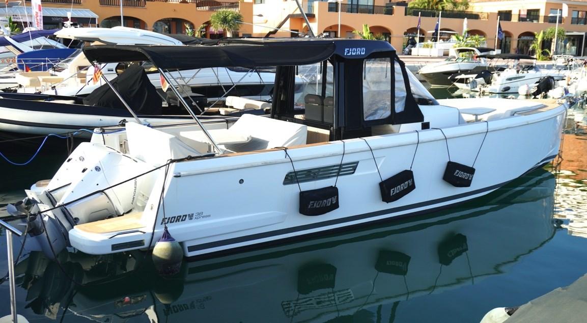 Juste réduit ! Nomis est un Fjord 38 Xpress très bien équipé avec quelques caractéristiques de douane qui rendent ce bateau à moteur vraiment unique. Son bimini fixe élargi offre une ombre permanente ancrée ou en cours. Spécialement conçu par le revendeur officiel Fjord à la demande du propriétaire et mis à niveau avec une enceinte semi-rigide pour fournir un abri supplémentaire lors des escapades hivernales. Un panneau solaire extra large a été installé pour offrir une meilleure durée de vie de la batterie. Le vendeur motivé écoutera les offres sérieuses de l’acheteur.