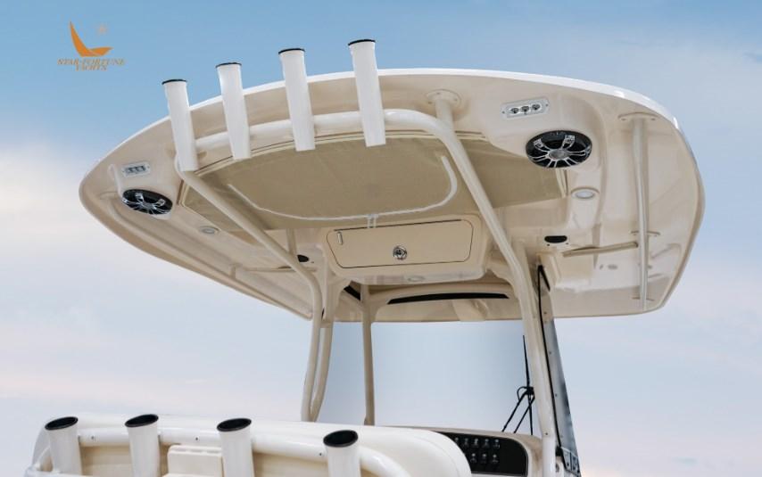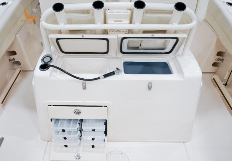 27 pieds, c’est l’un des meilleurs bateaux de pêche en haute mer. Conçu avec une barre élégante incorporant quatre porte-cannes, un rangement pour le matériel et un réservoir d’eau courante de 42 gallons, ce bateau est prêt pour la pêche. Tous construits sur la coque exceptionnelle SeaV² ® unique de Grady, le 271 assure la navigation la plus sèche de tous les bateaux du marché. Rejoignez les zones de pêche dans le confort et le style, puis profitez d’une croisière au coucher du soleil sur ce bateau familial à console centrale.