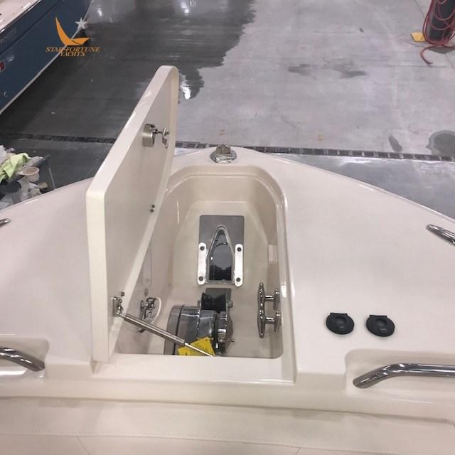Douche de cockpit, Flaps hydrauliques, Éclairage de courtoisie, 2 Pompe de cale automatique, Porte latérale, Guindeau électrique.
