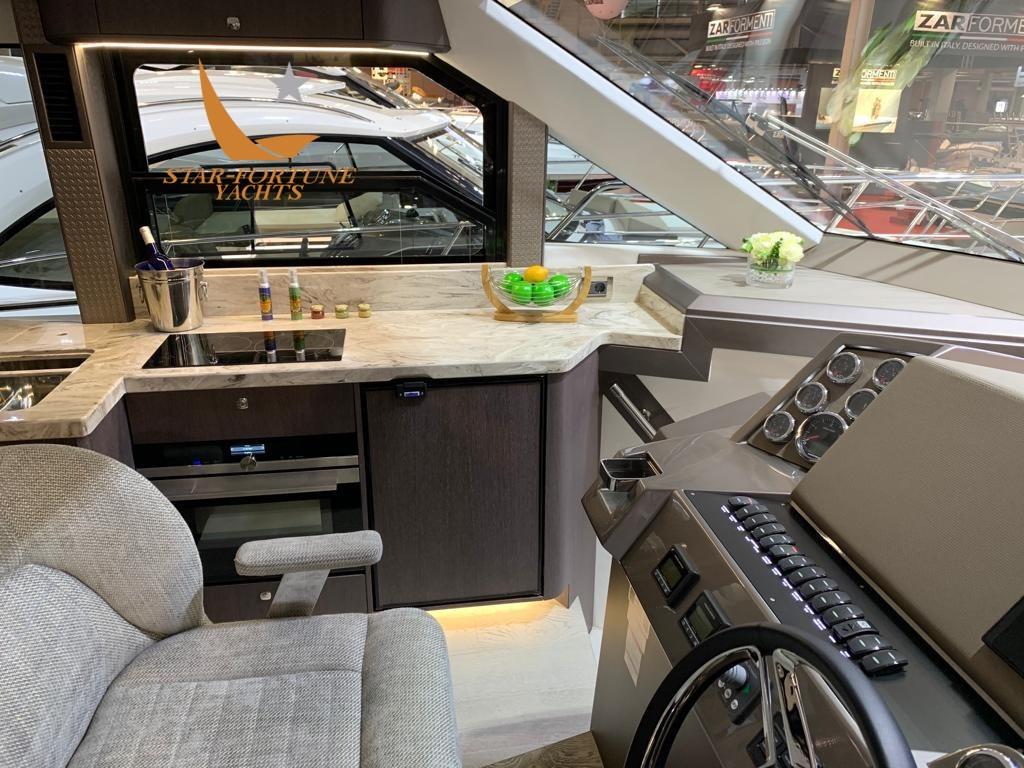 Le Galeon 400 FLY fait partie de la famille des yachts de quatrième génération, en tant que l’un des plus petits modèles à offrir le mode innovant Beach Mode. Il a été conçu pour offrir le plus haut niveau de maniabilité et de stabilité sur les vagues. L’intérieur est disponible dans certaines variantes modernes possibles, avec des options supplémentaires disponibles sur demande.