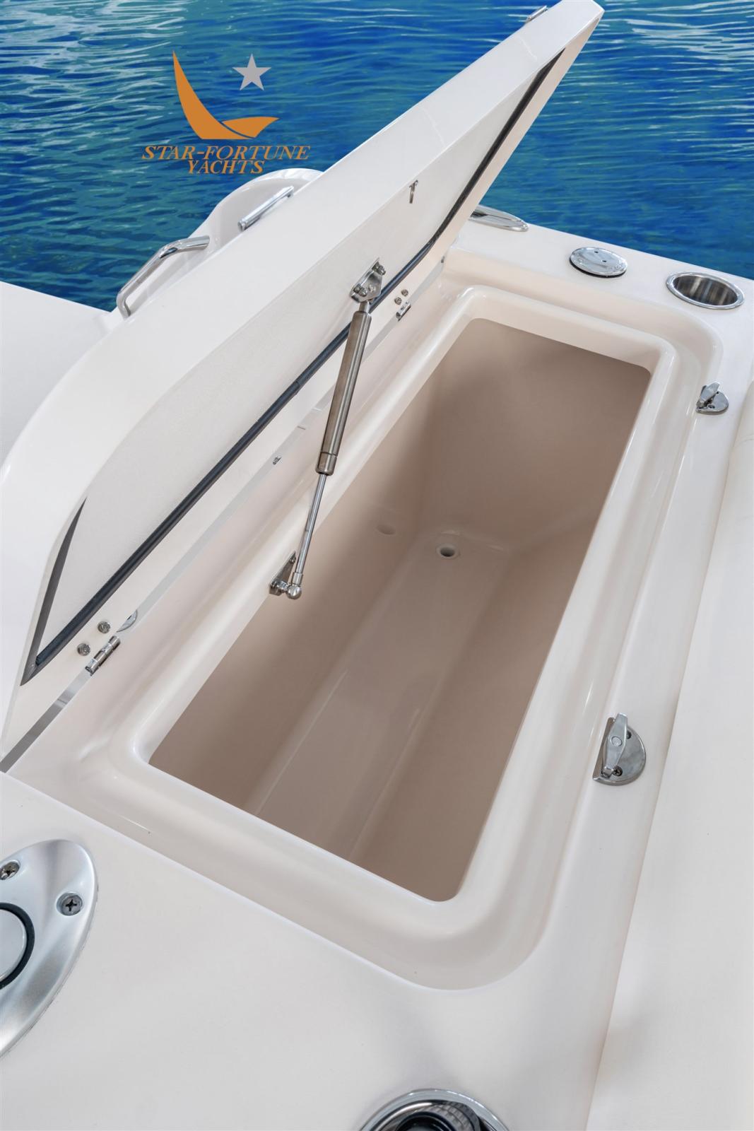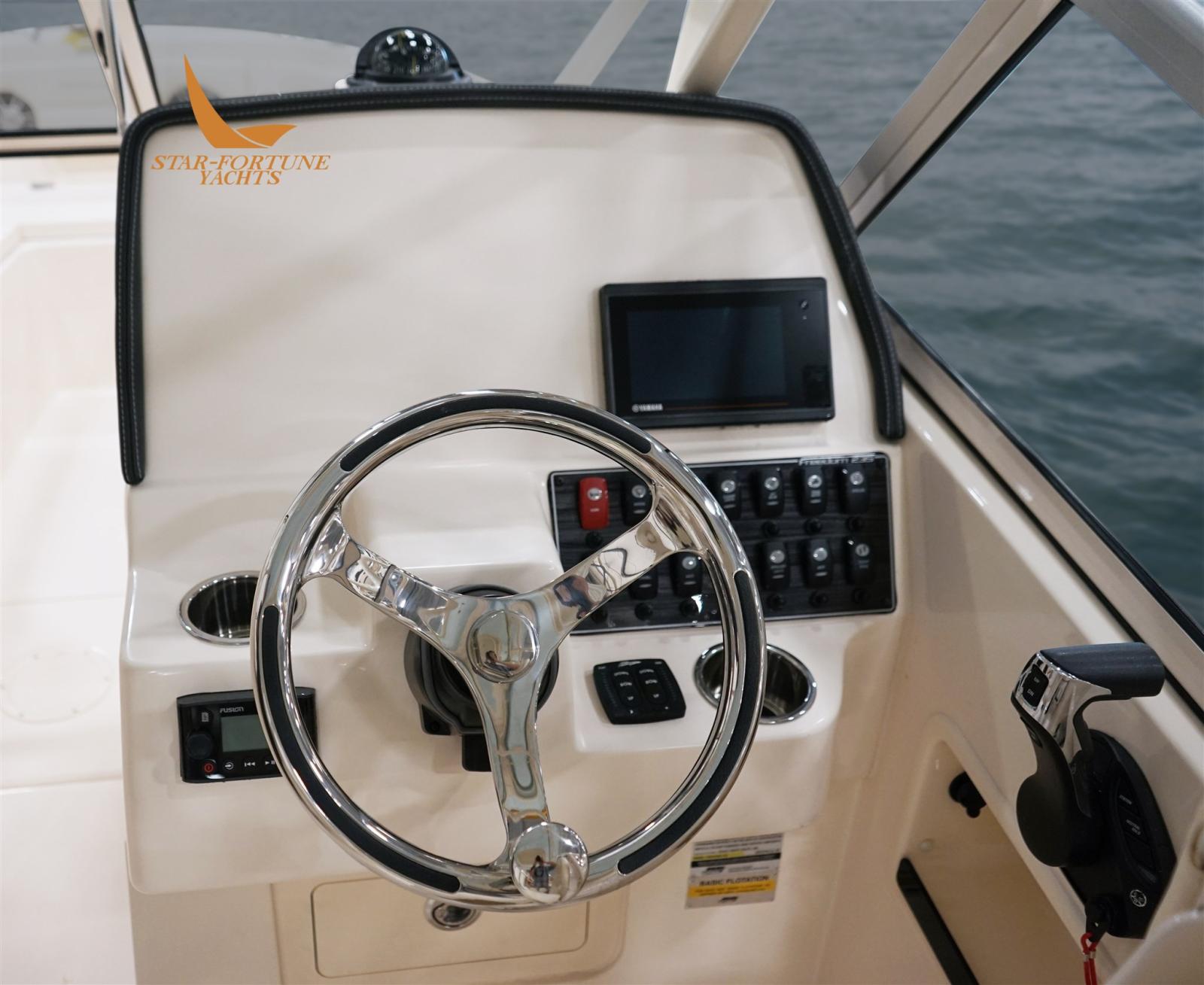 Doté des caractéristiques d’un grand bateau, le Freedom 235 est le bateau familial le mieux construit, parfait pour la pêche et la croisière. Le design élégant et avant-gardiste fait tourner les têtes, et lorsque vous montez à bord, la large gamme évoque une sensation de bateau. Un compartiment de tête surdimensionné, une douche de cockpit d’eau douce et une porte arrière robuste qui permet d’accéder aux plates-formes d’embarquement pour la baignade ou à quai ne sont que des commodités supplémentaires que l’on ne trouve généralement pas sur les bateaux de cette taille. Ce bateau de 23 pieds offre un bar aquatique en option et un siège de salon extensible électromécaniquement, ainsi que de nombreuses autres commodités supplémentaires, ce qui en fait l’un des meilleurs bateaux à double console et un régal pour toute la famille.