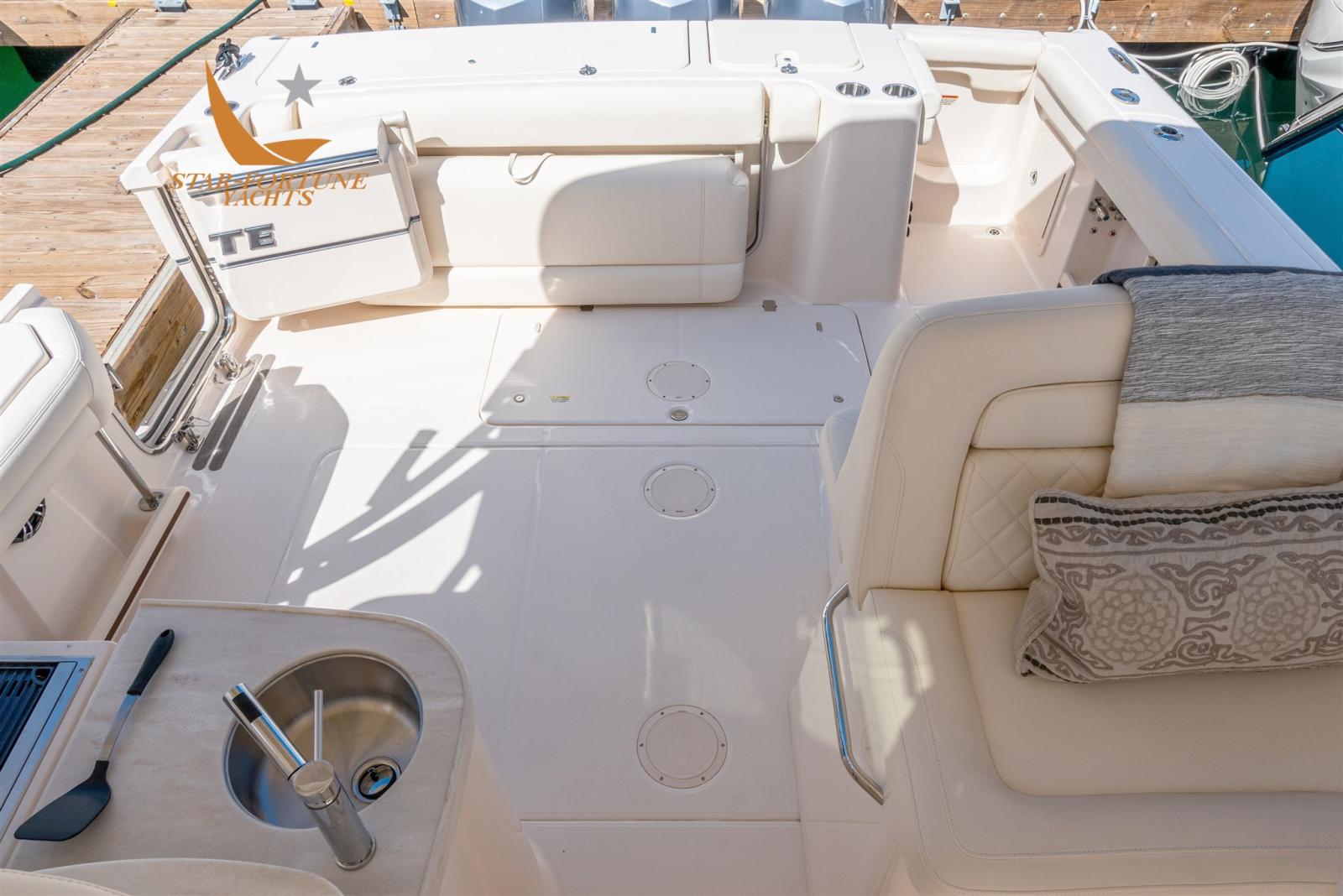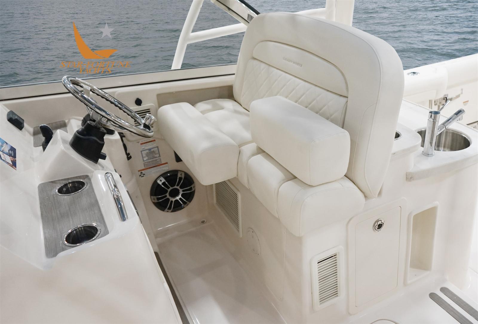 Cette console double de 33 pieds est un superbe bateau d’eau salée, parfait pour la pêche en haute mer mais bourré de confort, pour de nombreuses journées exceptionnelles sur l’eau ! En plus de deux consoles qui comprennent une tête de lit facile d’accès et une couchette spacieuse, le Freedom 335 comprend des équipements de divertissement de qualité supérieure avec un bar, un réfrigérateur et un barbecue. Avec un siège large et ultra-confortable à l’avant, un banc d’accompagnement enveloppant avec table et le banc arrière rabattable breveté de Grady qui peut être rabattu pour laisser plus d’espace dans le cockpit pendant la pêche, c’est le bateau parfait pour les familles multigénérationnelles qui veulent passer du temps ensemble sur l’eau.