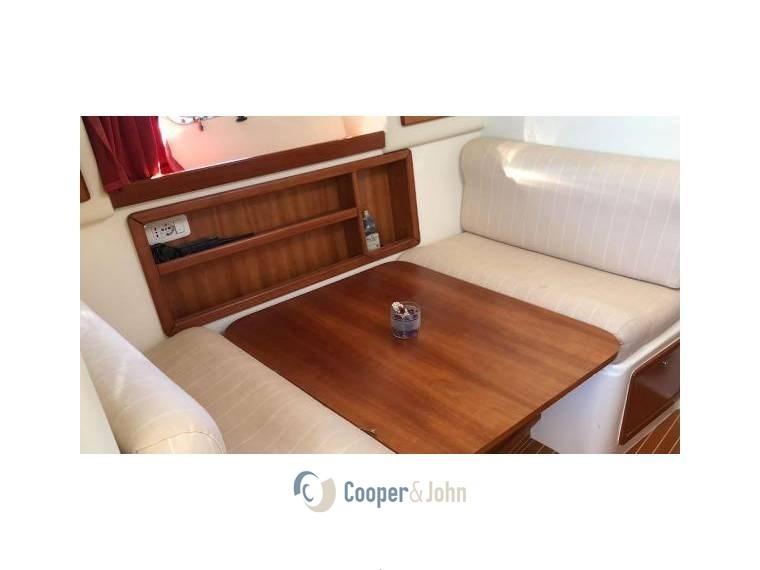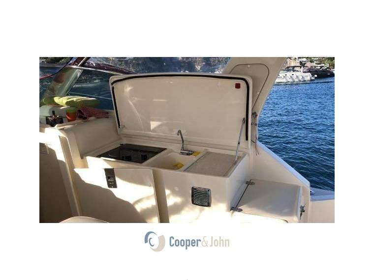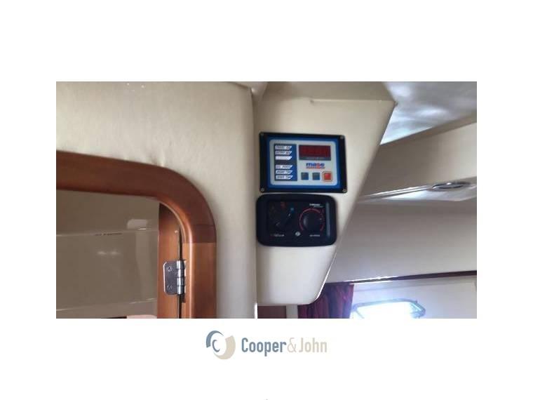 Alarme moteur, alarme de cale, ancre, autoclave, batteries, phare réglable, volets hydrauliques, système ignifuge, indicateurs de volets, évier dans le cockpit, lumières de courtoisie, pompe de cale automatisée, prise de quai 220V, table de salon pliante, klaxon, T-Top.