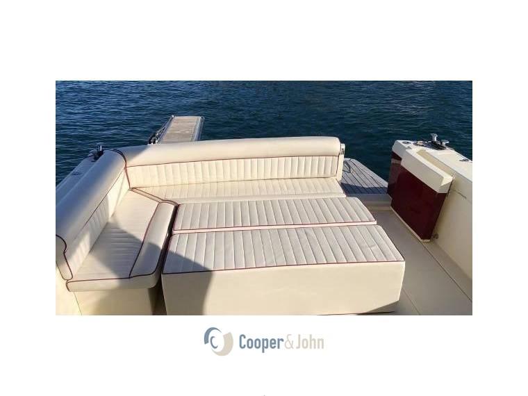 Eau sous pression, Douche de cockpit, Flaps hydrauliques, Passerelle, Plateforme arrière, Pompe de cale manuelle, Prise de quai, Guindeau électrique, Echelle de bain, table de cockpit, Table pliante de salon, Corne, T-Top.