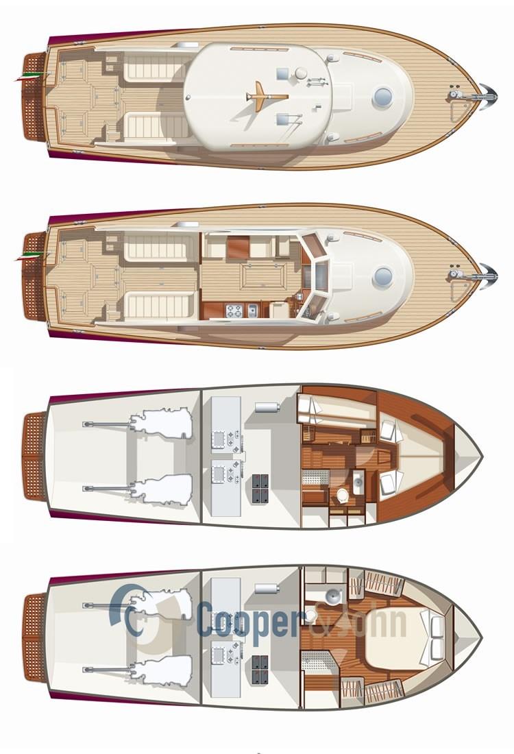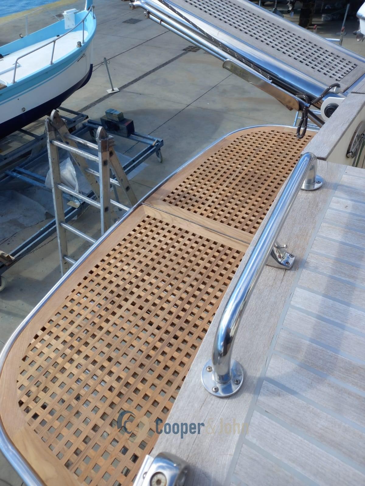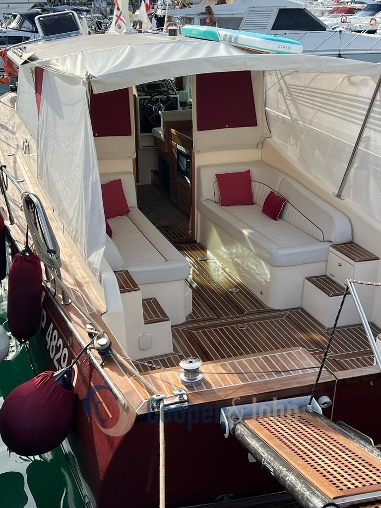 Eau sous pression, 10 Batteries, Douche de cockpit, Flaps électriques (Interceptor Sistem Volvo Penta), Passerelle (idraulica), Plateforme arrière (nuova 2023), Pompe de cale automatique, Prise de quai, Guindeau électrique (100 mt catena inox 2023), Echelle de bain, Winch électrique arrière.