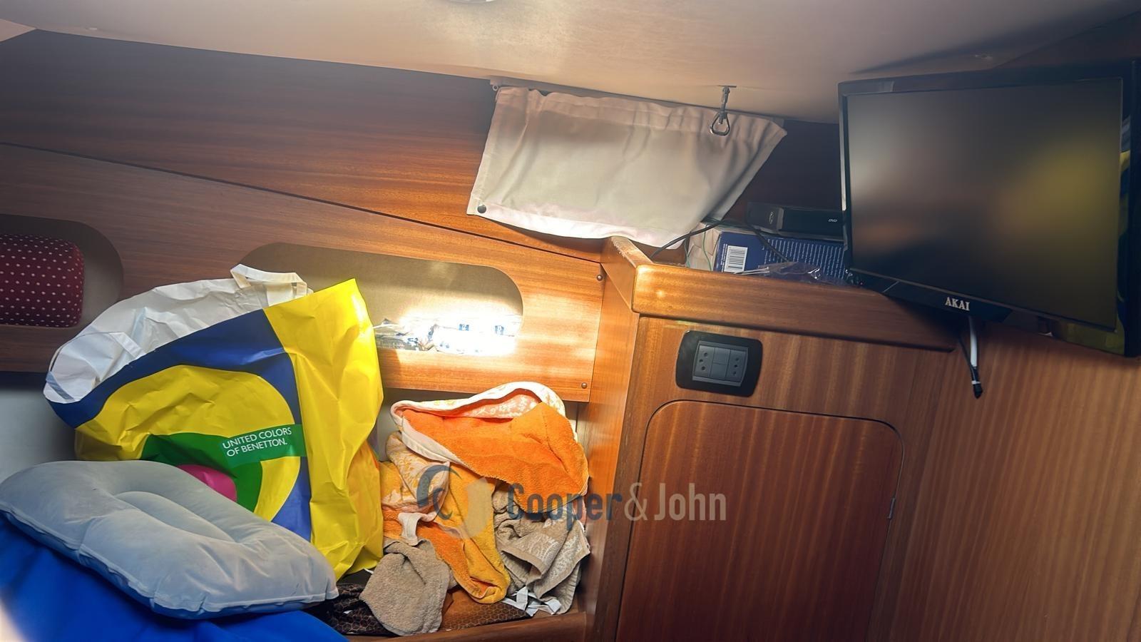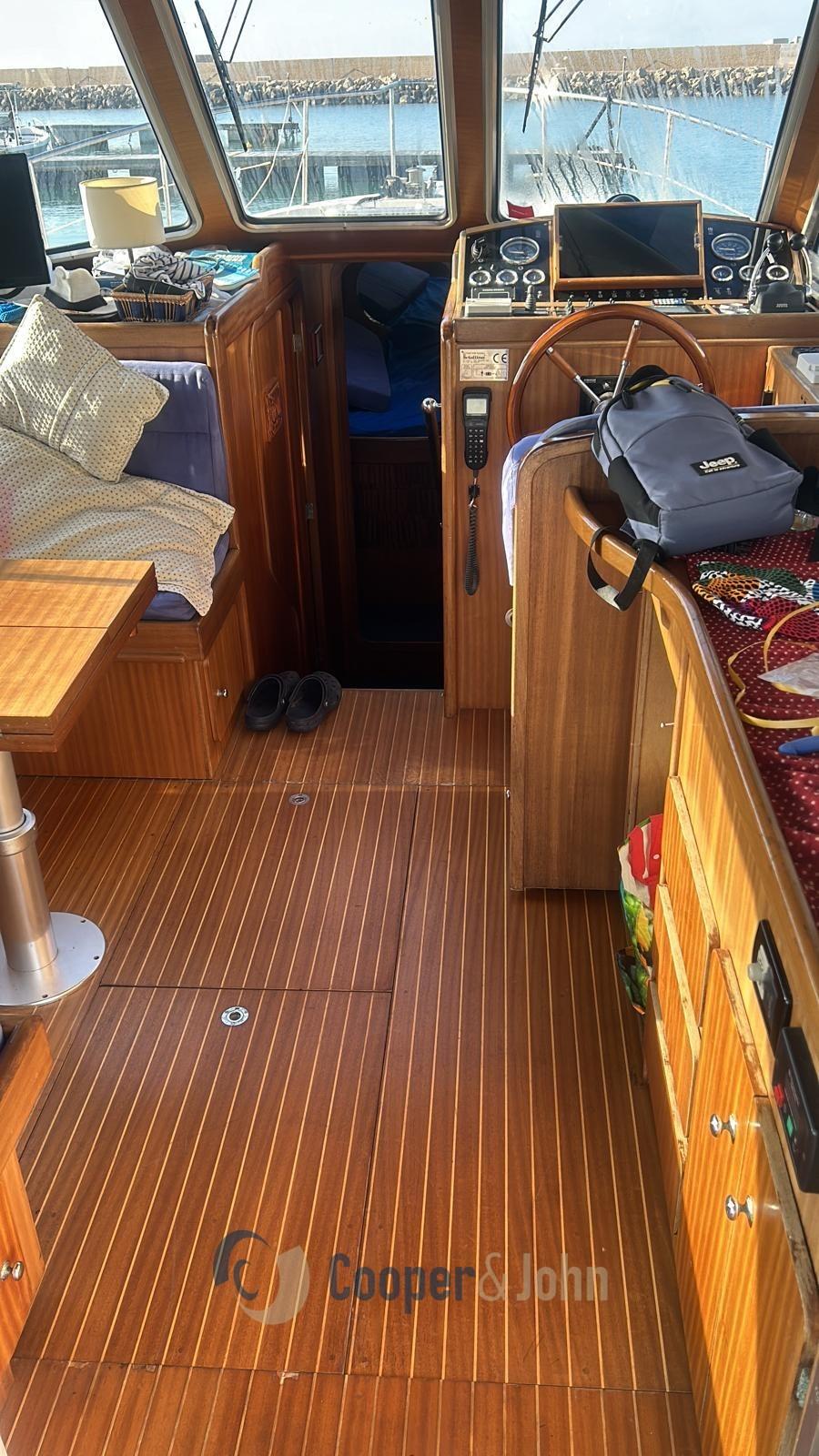 Alarme moteur, Alarme de pompe de cale, Eau sous pression, 4 Batteries, Douche de cockpit, Double barre à roue, Flaps électriques, Passerelle, Pompe de cale manuelle, Porte latérale, Prise de quai, Guindeau électrique, Echelle de bain.