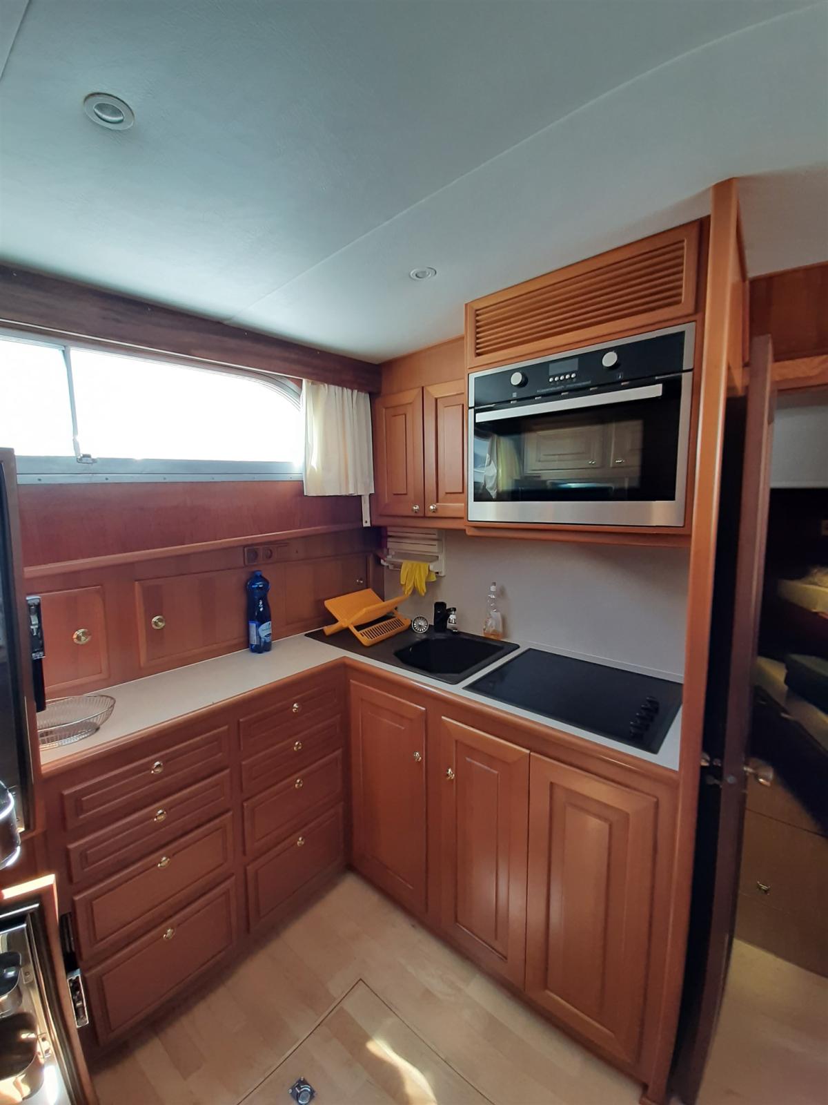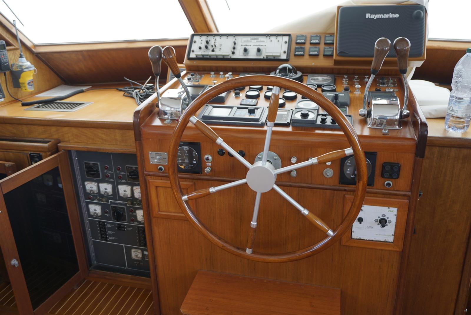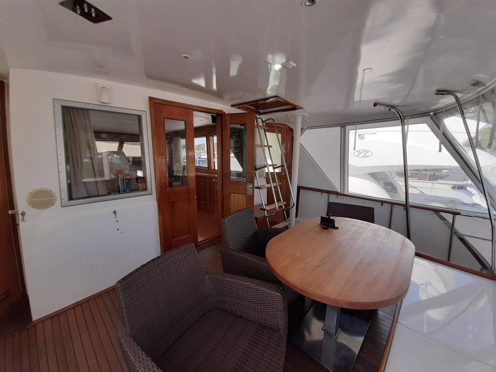 Alarme moteur, Chargeur de batterie (65 A), Douche de cockpit, Grue de flybridge, Hard top, Passerelle, Plateforme arrière, Pompe de cale automatique, Pompe de cale manuelle, Porte latérale, Porte latérale, Cockpit en teck, Prise de quai, Guindeau électrique, Echelle de bain, Stabilisateurs (KOOP NAUTIC), table de cockpit.