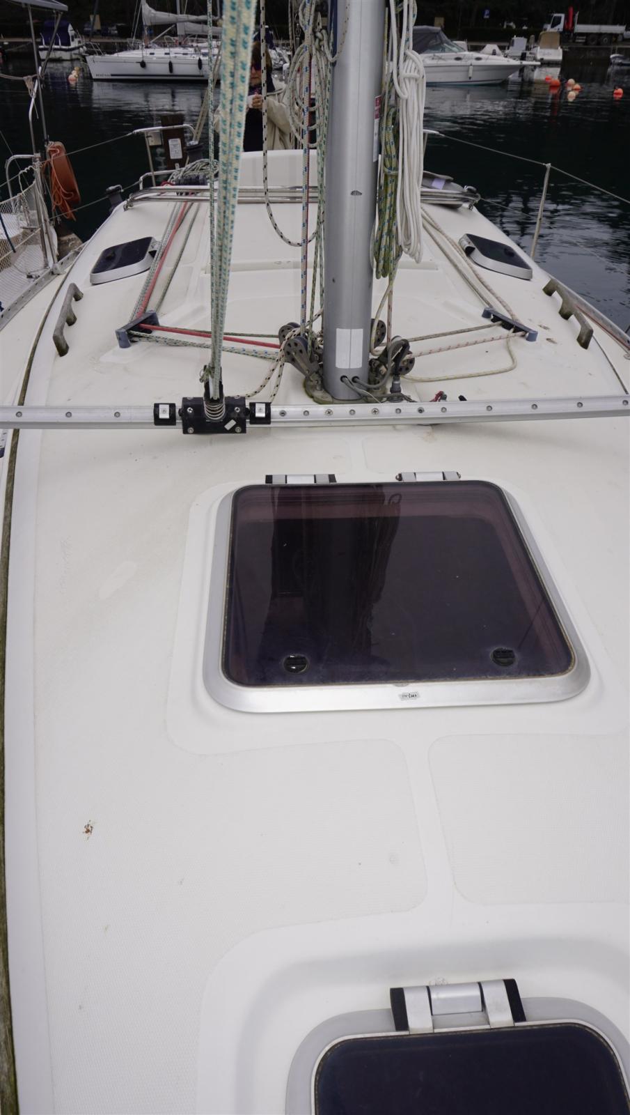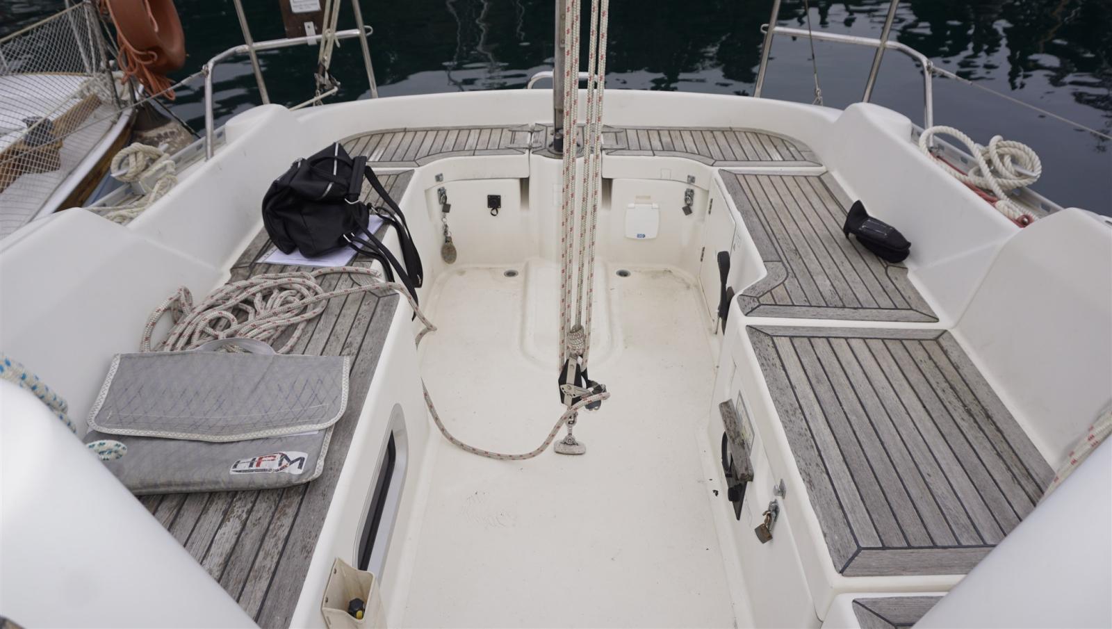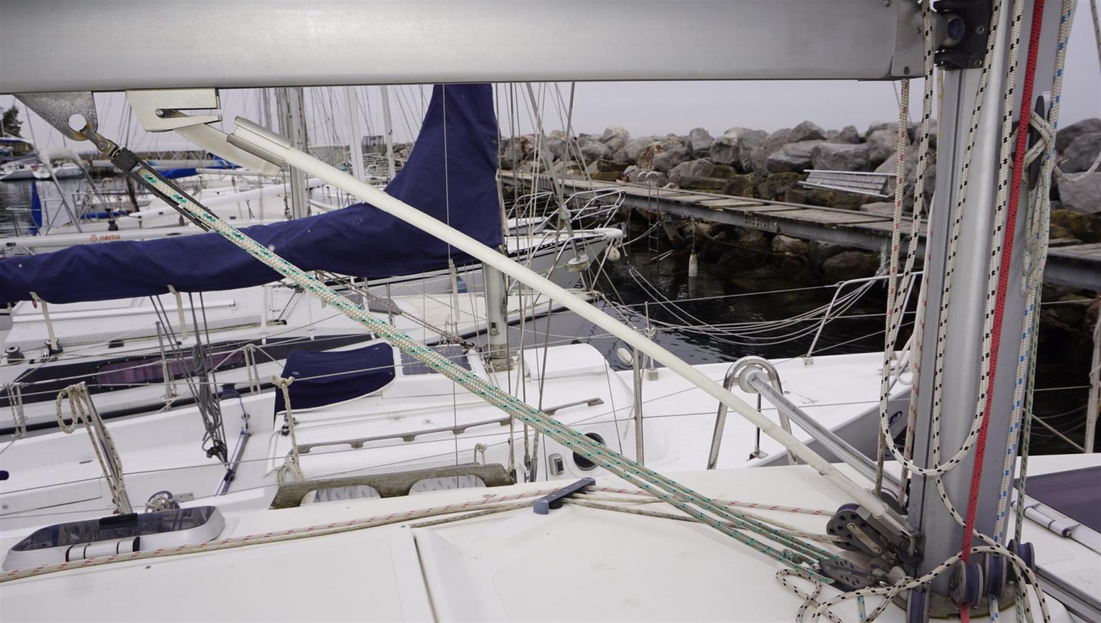 Ancre (BRUCE + 50 m 8 mm chain), Eau sous pression, Douche de cockpit, Phare de poursuite, Bossoirs, Prise de quai, Guindeau électrique, Echelle de bain, table de cockpit, Windex.