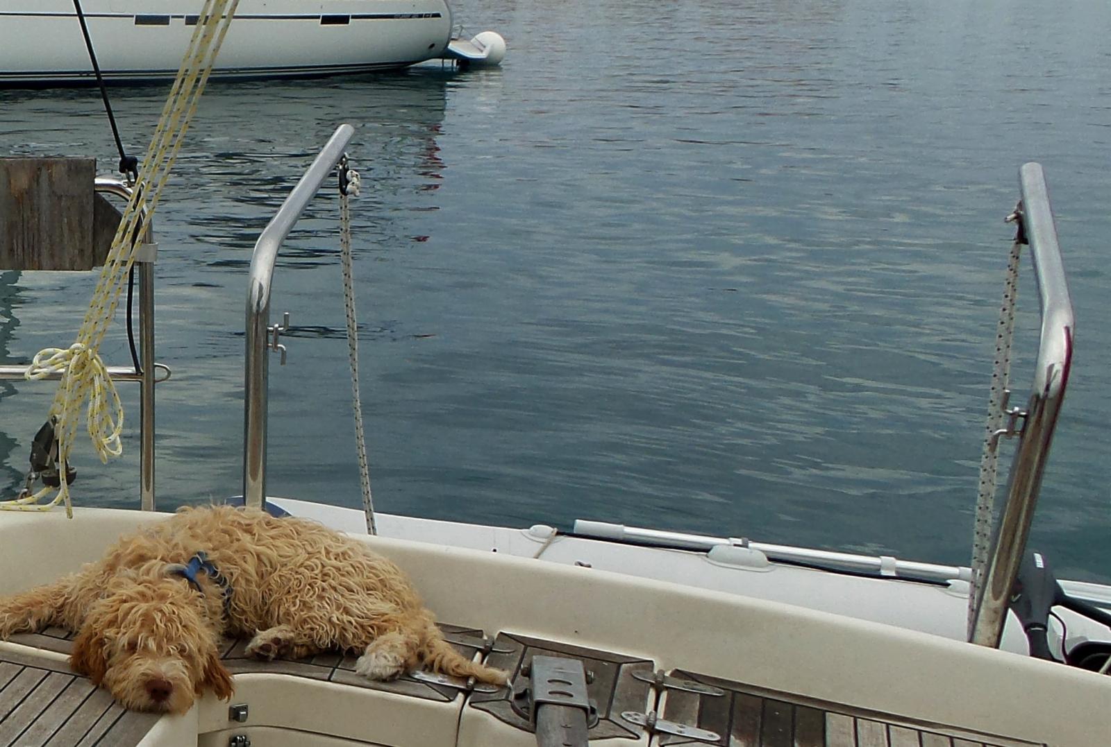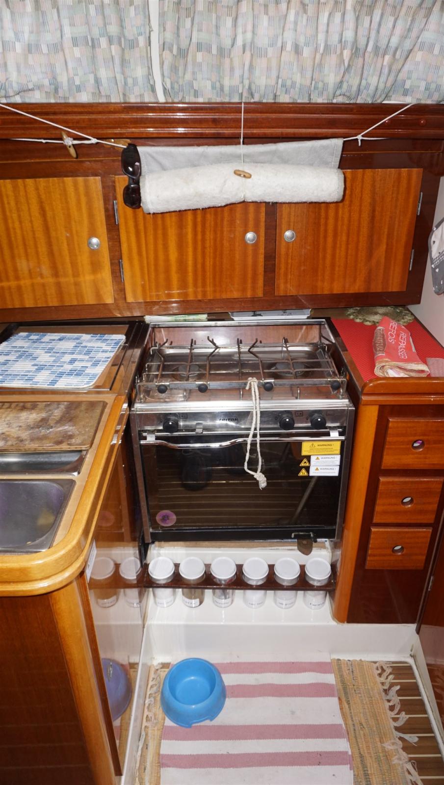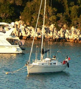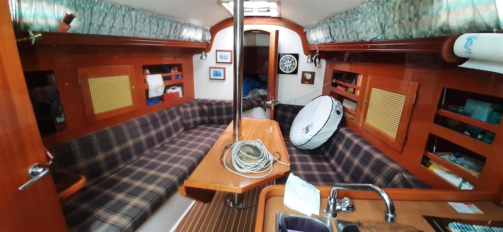 Ancre (BRUCE + 50 m 8 mm chain), Eau sous pression, Douche de cockpit, Phare de poursuite, Bossoirs, Prise de quai, Guindeau électrique, Echelle de bain, table de cockpit, Windex.