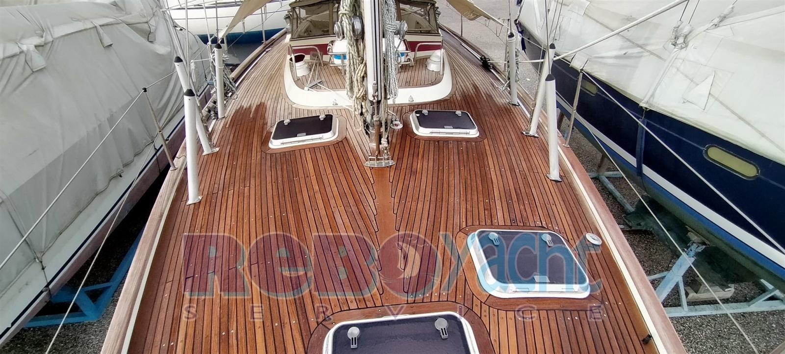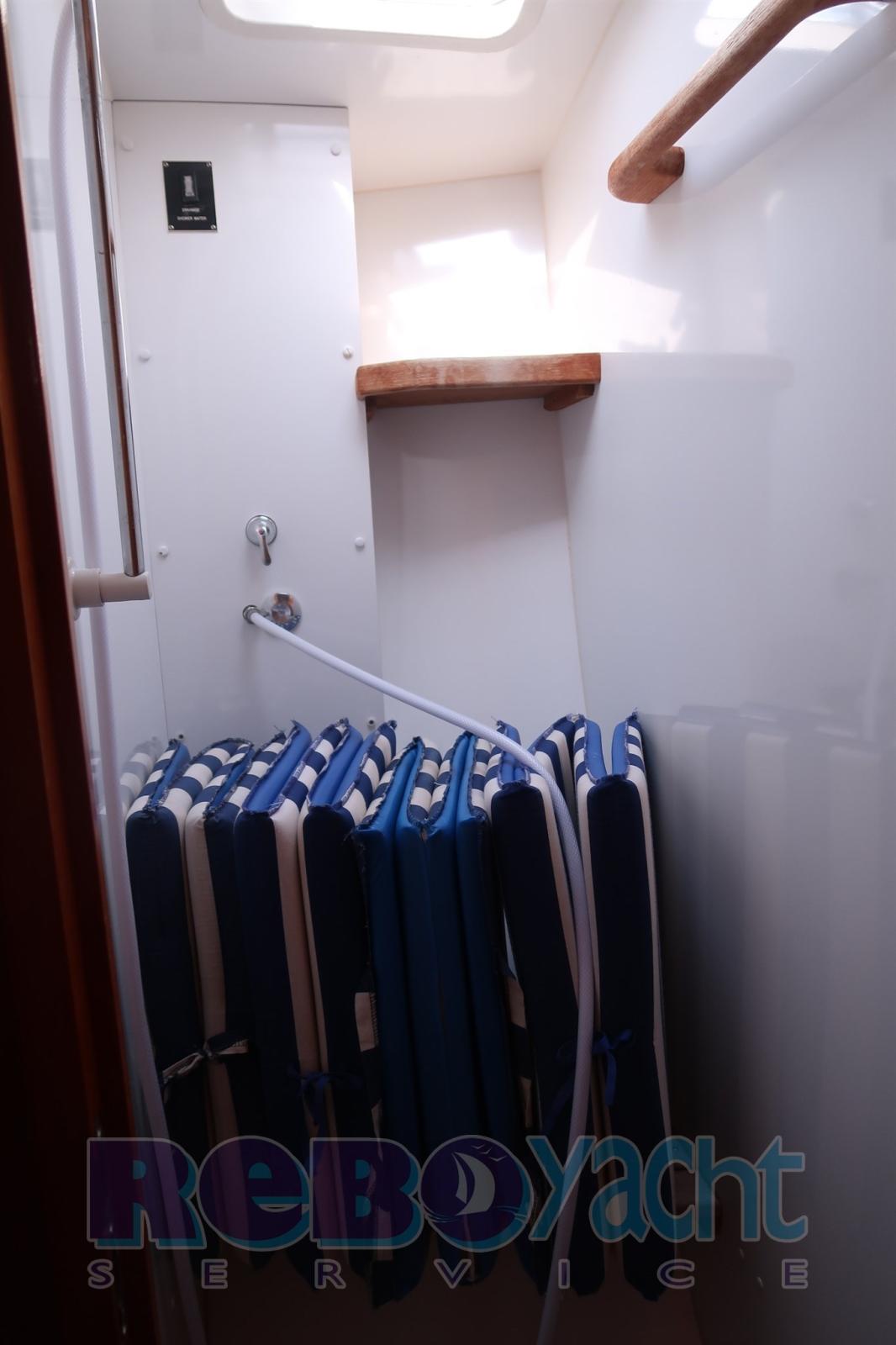 Équipement Gennaker (calza, bozzelli e scotte), Accastillage de spi, Enrouleur de foc (idraulico), Enrouleur de grand voile (idraulico), Bout-dehors (inox), Etai de trinquette, Ridoir de pataras (a manovella), halebas.