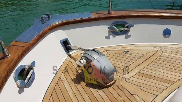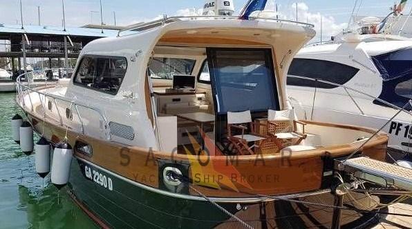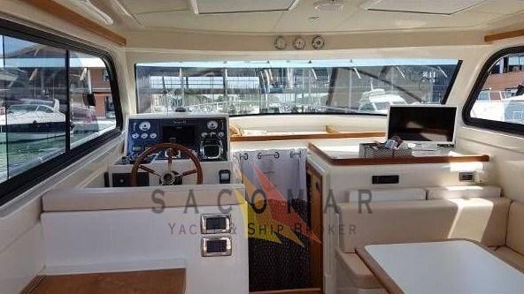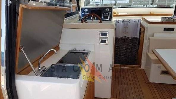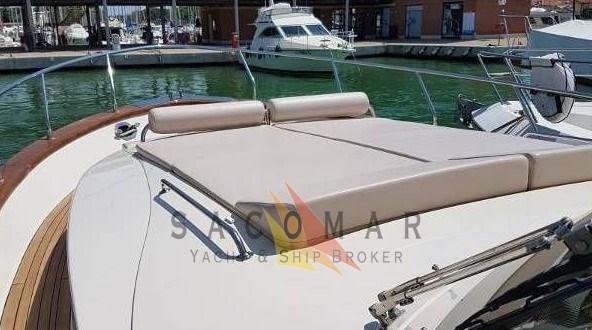 Alarme moteur, Alarme de pompe de cale, Eau sous pression, 5 Batteries, Passavant en teck, Douche de cockpit, Flaps hydrauliques, Éclairage de courtoisie, Spots sous-marins, Passerelle, Plateforme arrière, Pompe de cale automatique, Cockpit en teck, Prise de quai, Connexion eau sous pression à quai, Guindeau électrique, Echelle de bain, Corne.