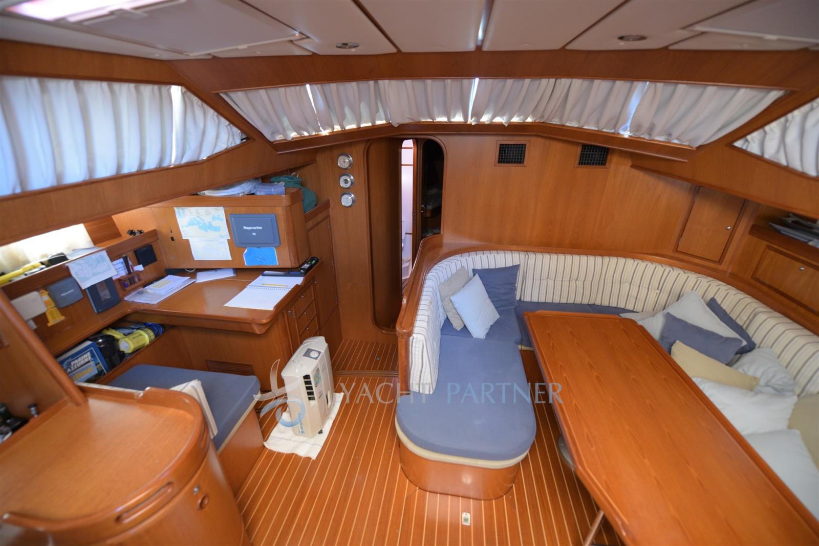 Alarme moteur, Alarme de pompe de cale, 3 Ancre, Eau sous pression, Batteries (720A (sostituite 2020)), Passavant en teck, 2 Chargeur de batterie (di cui uno con inverter), Douche de cockpit, Propulseur d'étrave (Sleiper 24V), Hélice de rechange, Phare de poursuite, Bossoir pour HB, Lavage de chaine, Moteur d'annexe (Yamaha 9.9 hp), Passerelle, Pompe de cale automatique, Pompe de cale manuelle, Cockpit en teck, Prise de quai, Guindeau électrique, Gréement monotoron, Echelle de bain, Chaise support HB, table de cockpit, Annexe, 5 Winch, 2 Winch électrique (winch genoa), Windex.