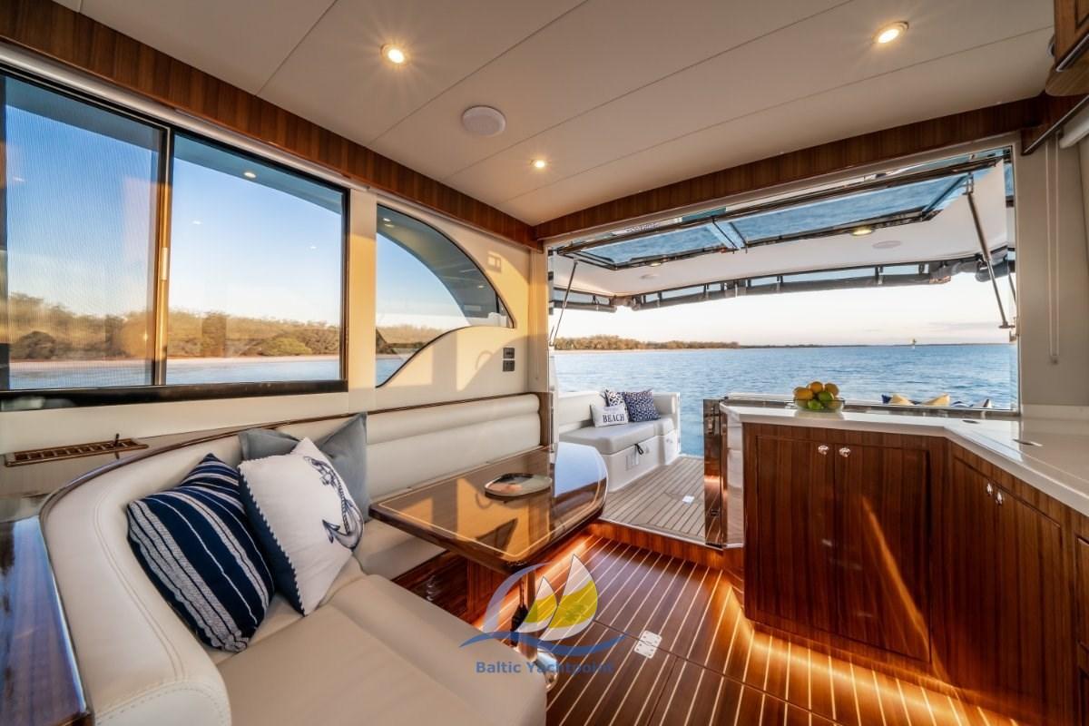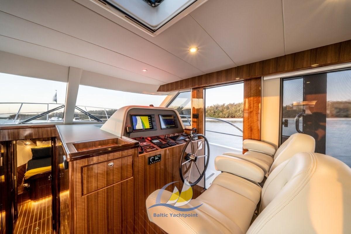 Tout en conservant des caractéristiques distinctives telles que des ponts de plain-pied et un cockpit spacieux, le croiseur de déplacement 460SX dispose de grandes vitres latérales dans le salon et d’un pare-brise en deux parties pour une excellente visibilité et un intérieur lumineux et aéré. La cuisine située au centre alimente le salon et le cockpit, car les vitres arrière peuvent être entièrement ouvertes pour relier de manière transparente les deux pièces.